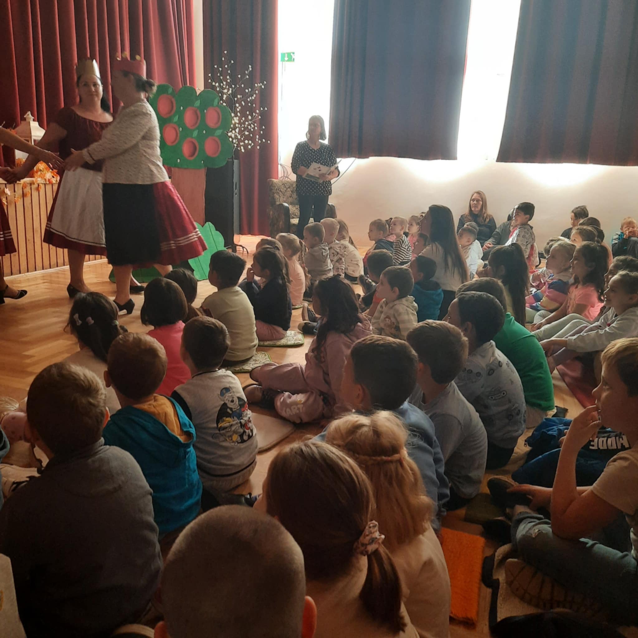 2025. 09.30-át a Népmese napját különlegessé tettük a gyerekek számára. Jelmezekkel, eszközökkel készülve érkeztünk meg a falunk Közösségi Színterébe óvodánk mindhárom csoportjával, ahol már vártak minket az alsós gyerekek pedagógusaikkal. Kispárnákon helyet foglalva kezdődött A só című népmese előadása az óvodai dolgozók szereplésével. A gyerekek élvezettel nézték végig előadásunkat, melyet nagy tapssal jutalmaztak.