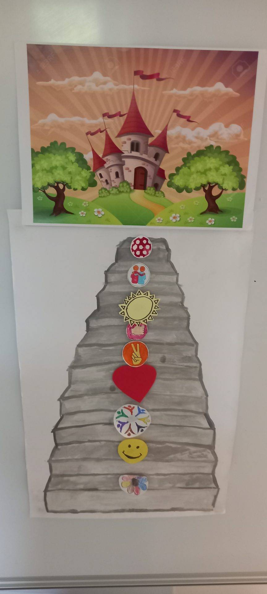 A fenntartható boldogság egyik fontos alapköve lehet, ha közösen oldunk meg feladatokat, segítve egymás munkáját, együtt küzdve, örülve az átélt élményeknek. Ezt tapasztalták meg óvodásaink is, amikor csapatokban építettek boldogságvárakat, illetve együttesen helyezhették el a boldogságvárba vezető lépcsőfokokra a különböző támakörök jeleit.