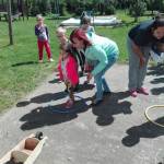 A bemelegítő zenés torna után hangulatos csapatversenyeken vehettek részt, anyukák vezetésével!