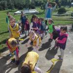 A bemelegítő zenés torna után hangulatos csapatversenyeken vehettek részt, anyukák vezetésével!
