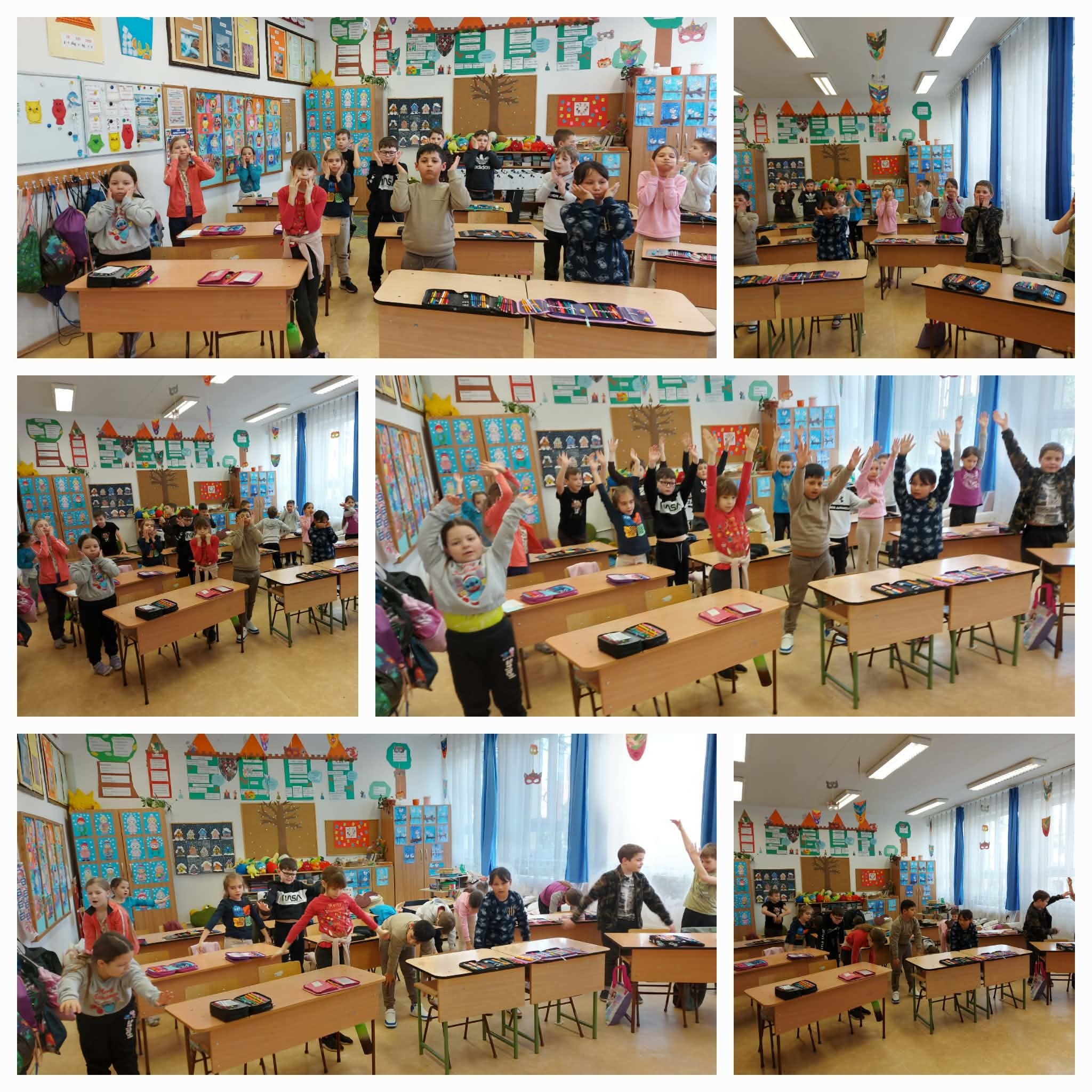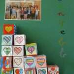 Az első tanítási órát relaxációs gyakorlatokkal kezdtük: “Arcizomlazítás”, “Lemegy a nap, lankad a kar, a törzsem pihenni akar”. Utána megbeszéltük az elméleti hátteret. Meghallgattuk a hónap dalát, ami most egy lazító gyakorlatsor volt. Nagyon tetszett a gyerekeknek. Párokban megoldották a rejtvényt, aminek a megfejtése az „együtt” szó volt. Majd megkapták a színezőt. A színezőn szívecskék voltak, ebből egy kockát lehetett összerakni. Az első foglalkozást meditációval zártuk.
