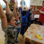 Mivel a gyerekek a téli időszakban kevesebbet mozoghattak a szabad levegőn, ezért a Megküzdési stratégiák című témához mozgásos tevékenységeket választottam. Nálunk a gyerekek a délutáni pihenő alkalmával mindig választanak maguknak egy alvóállatot. Most ezek közül az egyik kedvencet egy dinoszauruszt rejtettem el a csoportban. Tízórai után a beszélgető kör alkalmával szomorúan közöltem velük, hogy az egyik kis kedvenc állatukat elrabolta egy gonosz boszorkány. Miközben beszélgettünk, levél érkezett hozzánk egy térképpel, amire előzőleg felrajzoltam a feladatokat, amit ha végrehajtanak, akkor megtalálhatják a kis dinoszauruszt. A gyerekek nagyon lelkesek voltak, szívesen hajtották végre a különböző feladatokat, mint például, versmondás, közös éneklés, torna. Amikor minden feladattal végeztünk, együtt közösen megtaláltuk a kis kedvencüket is, amit kitörő örömmel fogadtak. Megkérdezték, hogy a gonosz boszorkány akkor most eltűnt, ugye? Megnyugtattam őket, hogy igen, valószínűleg elbújt a nagy kerek meseerdőben.