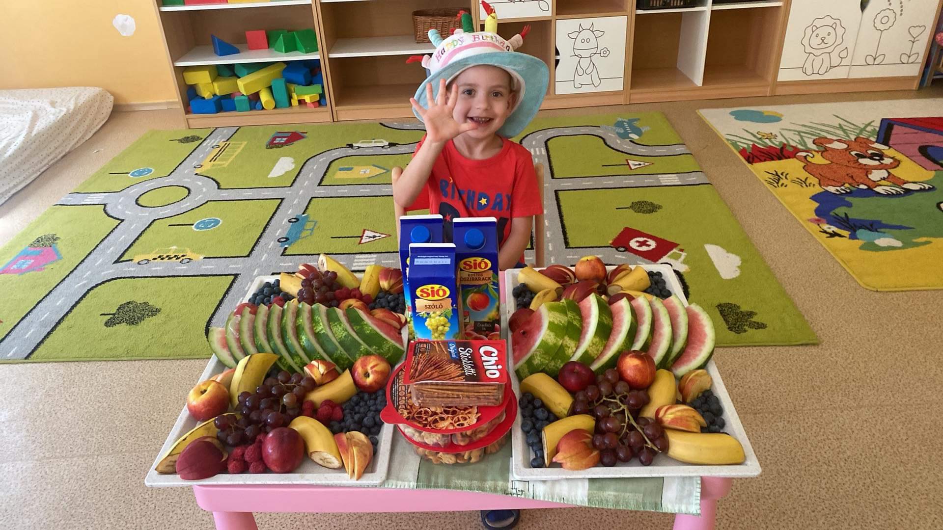 Az utolsó boldogságóra foglalkozás témája a fenntartható boldogság volt még júniusban. A nyár beköszöntével valósítottam meg a foglalkozás témáját. A gyerekek kedvenc Csupaszív figurája a tízórait követően egy simogatás után játékba hívott mindenkit, majd leültünk egy beszélgetőkörre a szőnyegre. A Boldogerdő-Kerekerdő mesét követve alakítottunk egy szeretetfolyosót, ahol a ballagó nagycsoportosaink keresztül haladtak, közben a többi kisgyermek egy egy kedves tulajdonságot mondott az éppen áthaladó gyermekről, a folyosó végén nagy öleleléssel vártam a gyerekeket! Nagyon szerették az év folyamán a Boldogságórákat, sok mesét hallgattak, relaxációs játékot játszottak, zenét is hallgattunk minden foglalkozás alkalmával! Igyekeztünk, hogy lehetőség szerint mindig pozitív érzelmek (öröm, nyugalom, érdeklődés, izgalom) vegyék a gyermekeket körül. A foglalkozást egy születésnappal zártuk, ahol felcsendült Bagdy Bella- Isten éltessen, Boldog Születésnapot című száma, melyet a gyermekekkel együtt énekeltünk.