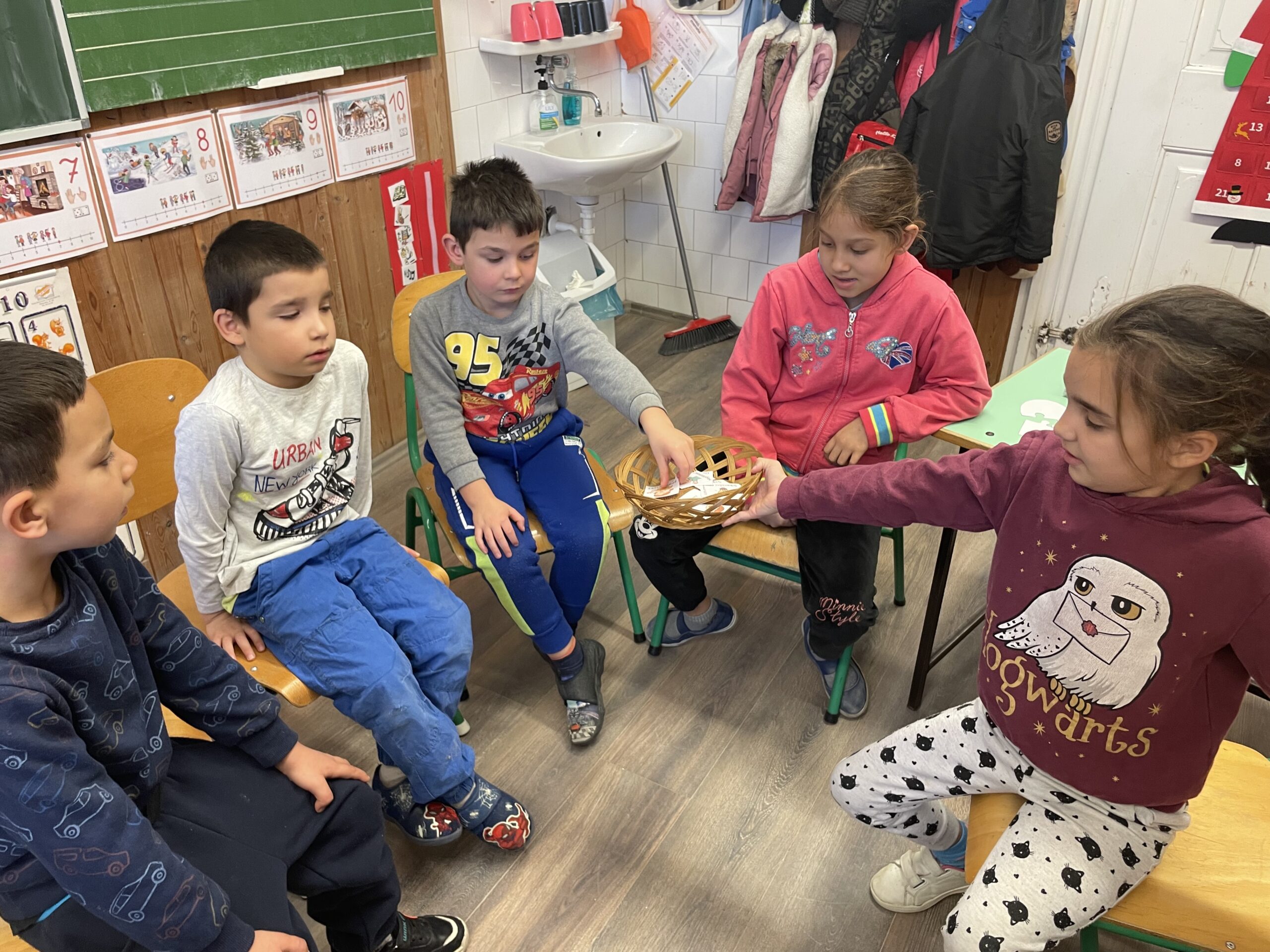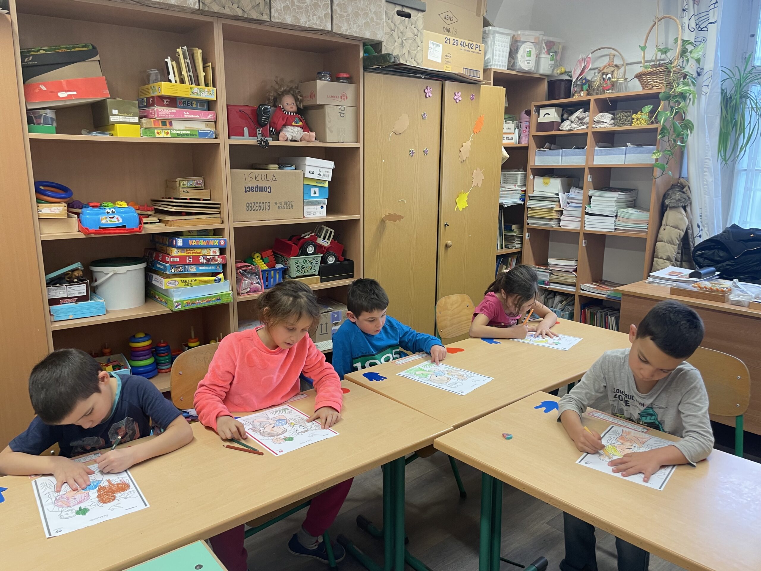 Móra Ferenc: A jó orvosság című mesét feldolgoztuk, majd kiszínezték a hozzá kapcsolódó színezőt. A „Kis barátom, hogy vagy?” játék során nagyon figyeltek egymásra, kedvesen szóltak társukhoz. Eljátszottuk a „kedves szavak kosara” című játékot, színeztük és összeraktuk a szív puzzlét, építettünk dominótornyot, majd megállapítottuk, hogy közösen milyen szép dolgokat tudunk létrehozni.