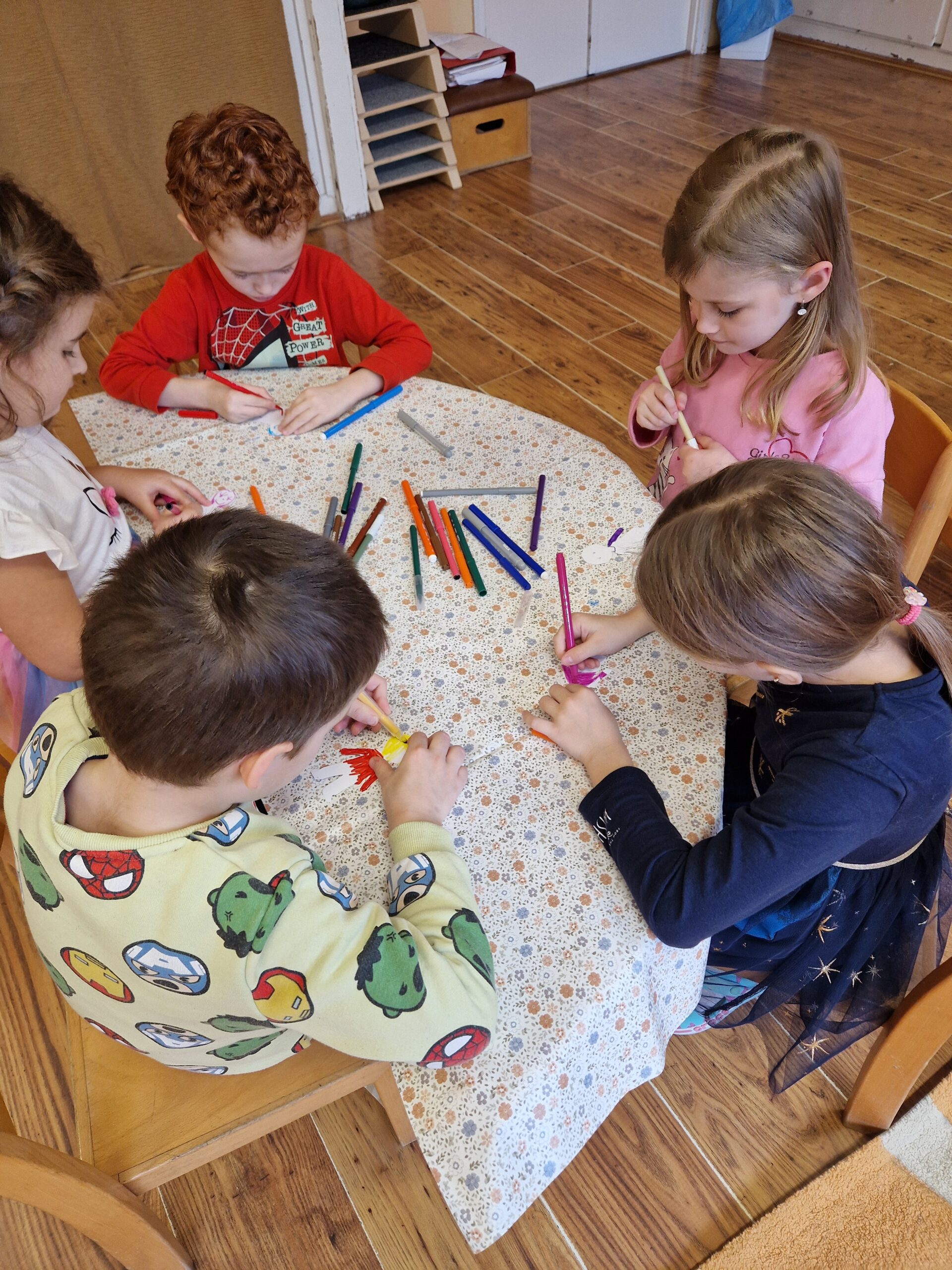 Ennél a témánál a gyerekek, mint társas kapcsolataik egyből a barátaikra gondoltak. Kis rávezetéssel, beszélgetéssel tudtuk bővíteni a kört, hogy kik is tartozhatnak még ide. A kisbarátom hogy vagy beszélgetőkör kicsit véleményem szerint nehéz volt nekik, hiszen a Kisbarátom hogy vagy kérdésre szinte mindenki csak azt válaszolta, hogy jól. A barátságláncot nagy örömmel készítették és figyelték egymást, hogy ki milyennek készítette el saját magát.