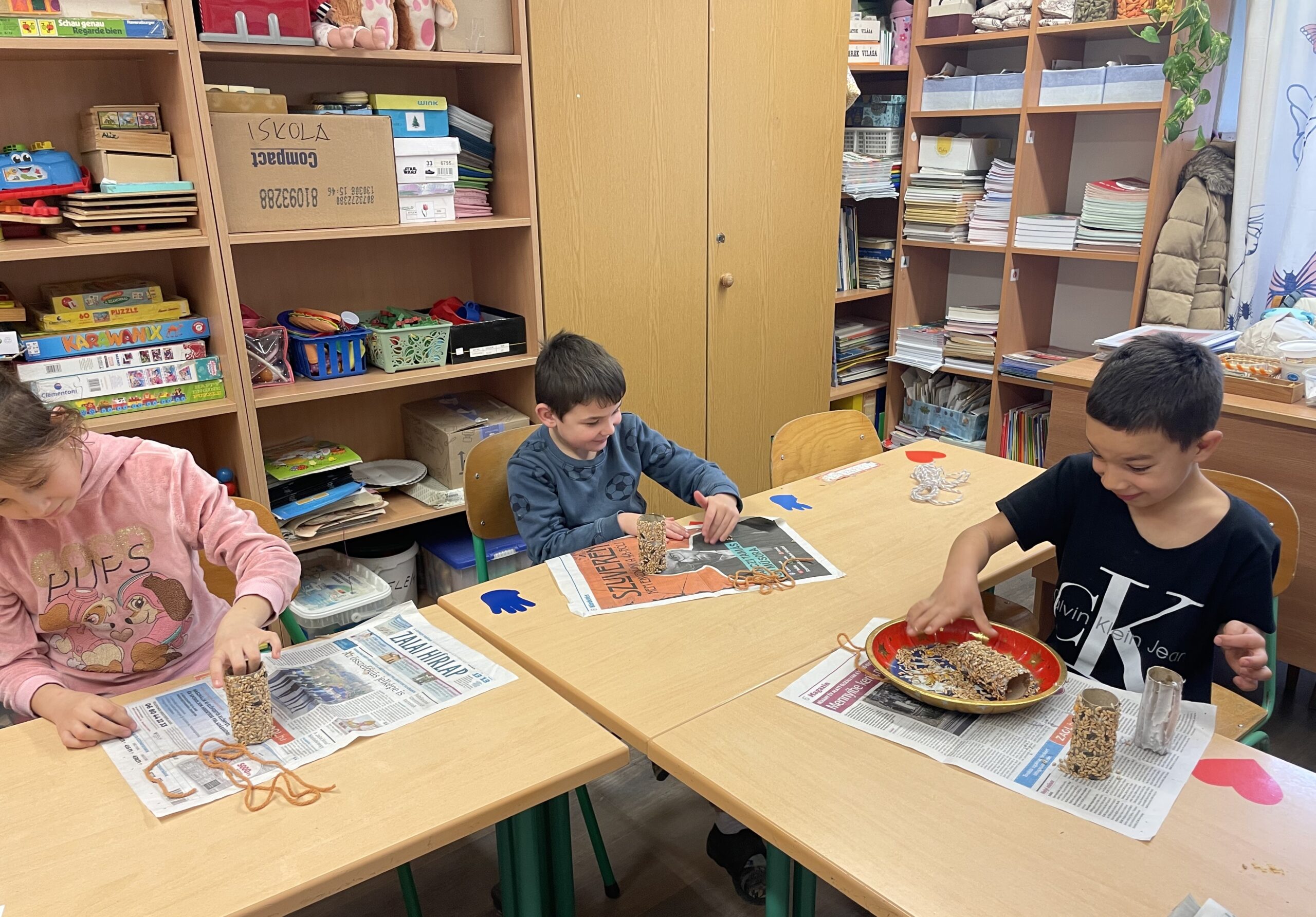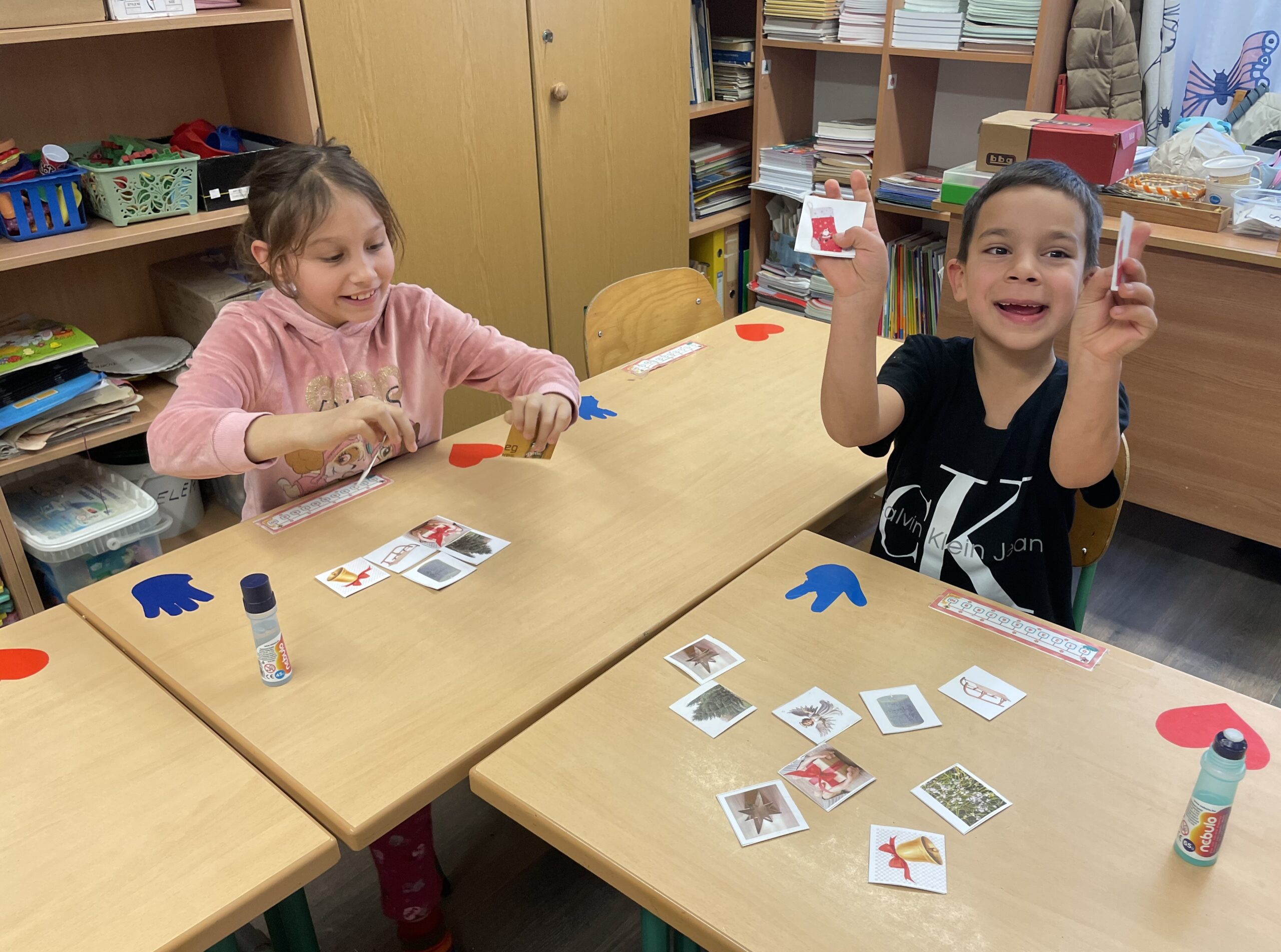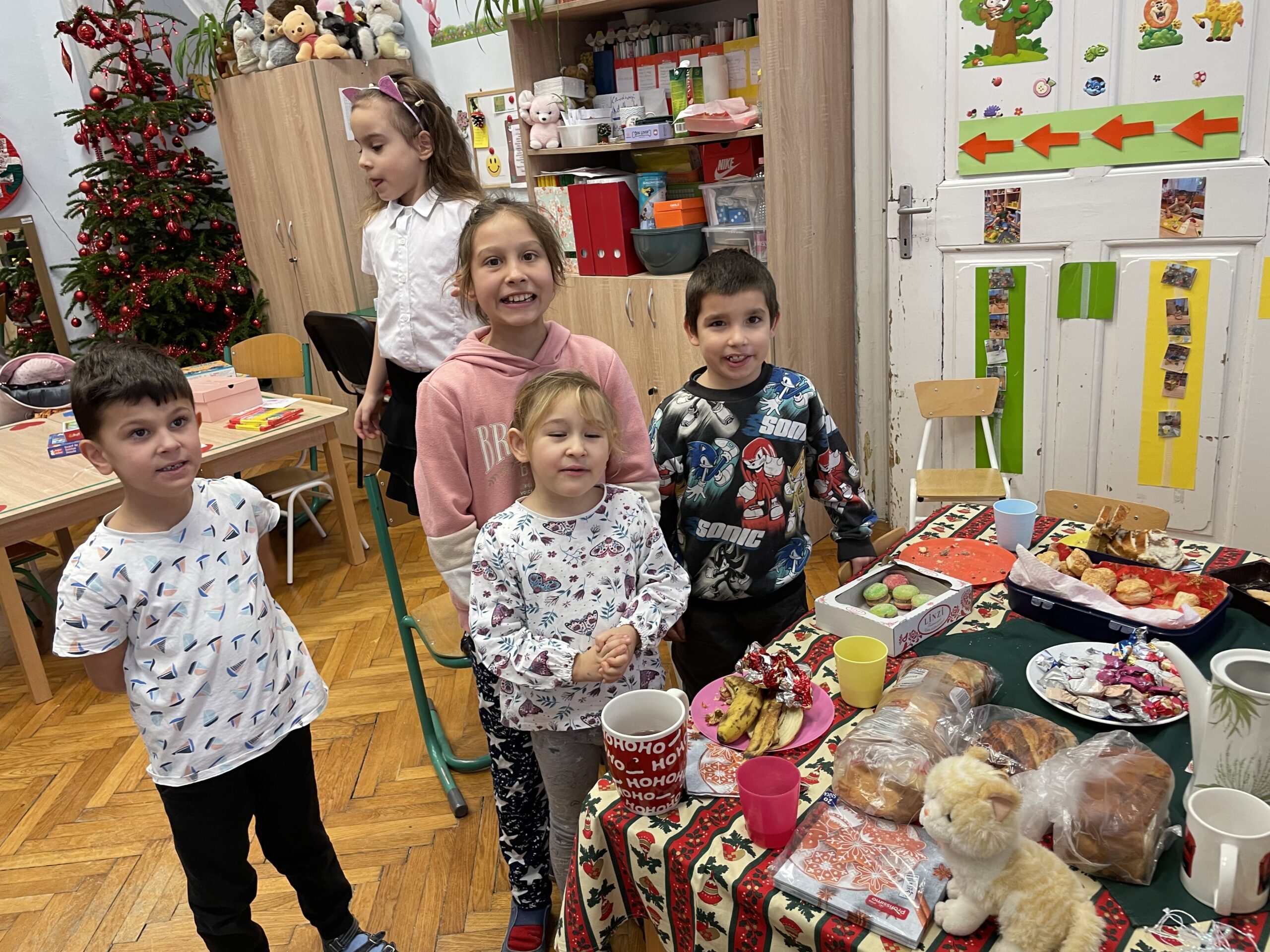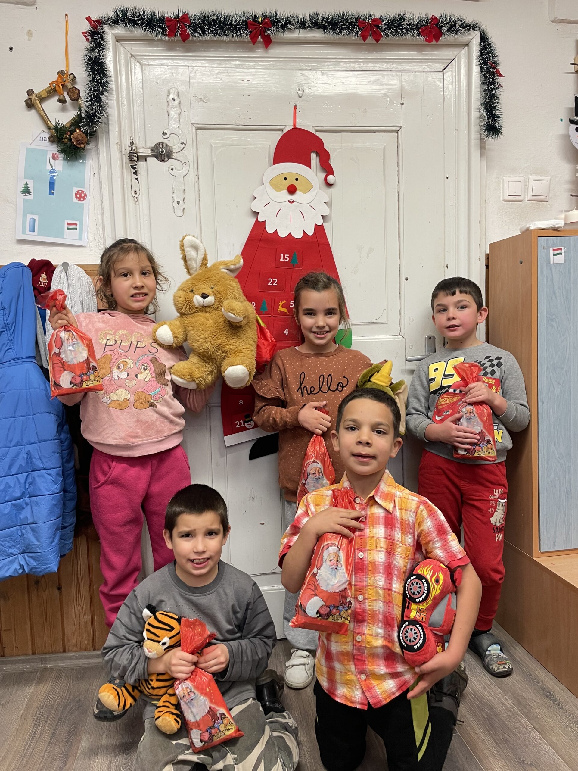 Meghallgattuk Zelk Zoltán: Mikulás bácsi csizmája című mesét, melynek központi eleme a segítségnyújtás, az önzetlen örömszerzés volt. A mese feldolgozása során megbeszéltük, hogyan érezte magát a Mikulás a jó cselekedet után. Több rajzos, színezős feladatot is megoldottunk. Kiszínezték a mellékletben található párkereső színezőt, szívecskéket színeztek, melyekre mindenkinek felkerült 3 társának jele, ezzel elnyerték a „jószívű” címet. Karácsonyi memóriakártyákat készítettünk, Luca-napi jóságbúzát vetettünk, gondoskodtunk a madarakról is madáretető készítésével. Meglátogattuk az óvodás csoportot, „szeretet ajándék” címen teát és kalácsot vittünk a kicsiknek. Egy kisfiú születésnapját ünnepeltük a hónap elején. Megkerestük a városban a Mikulást, verssel, dallal és egy rajzzal kedveskedtünk neki, a csomagért és ajándékért cserében.