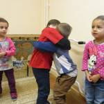 Élvezettel vettek részt a szeretet játékban, mely során ölelést, simítást, puszit kellett tovább adniuk egymásnak. Akik szerették volna, elmondhatták, miért szeretik a másikat. Öröm volt hallani a kedves mondatokat. Ezt követően megbeszéltük, mennyire fontos és jó dolog, ha vannak társaink, akikkel megtudjuk osztani amink van, tudunk egymásnak segíteni, együtt tudunk örülni és ha kell, osztozunk a szomorúságban is.