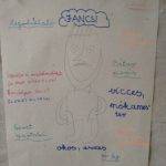 A csoport tagjaival ráhangolódtunk a hónap dalával a foglalkozásra,majd az aláírásgyűjtéssel folytattuk munkánkat. Miután megismerték a gyerekek egymás tulajdonságait, képességeit és érdeklődési körét, készítettek egy önarcképet. A kép köré társaik az adott tanuló jellemzőit gyűjtötték össze az előző feladat alapján. Közben jókat viccelődtek, hiszen eddig nem ismert tulajdonságok is felszínre kerültek.