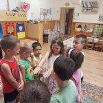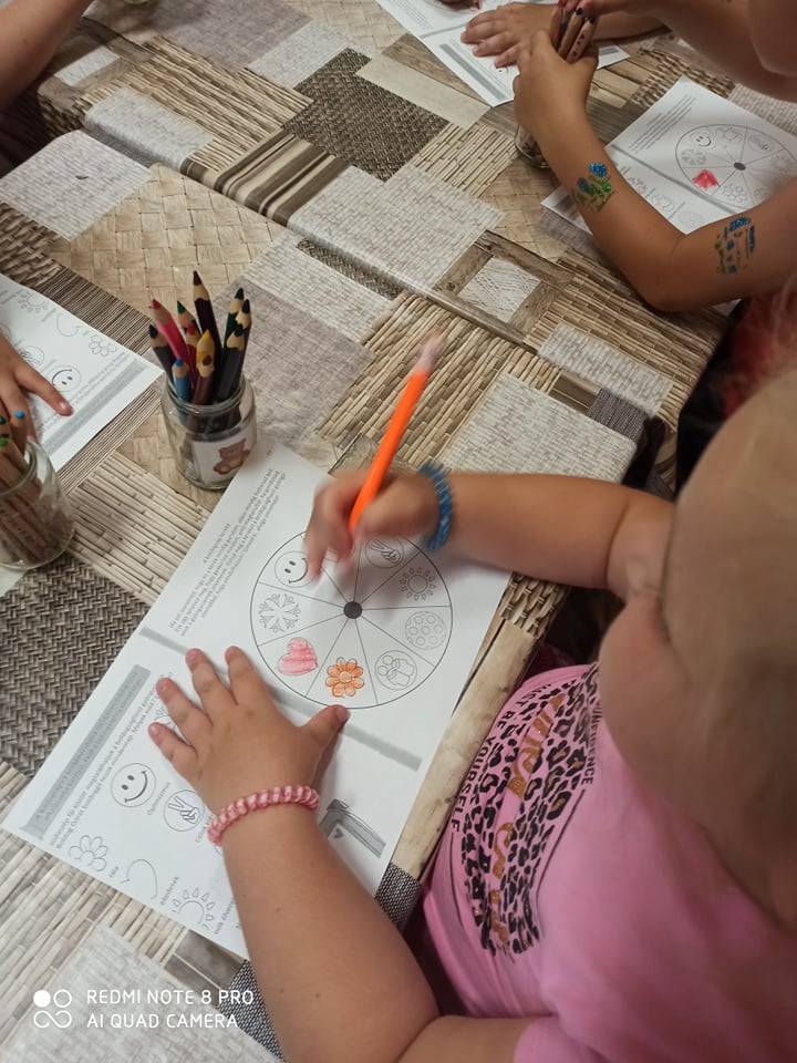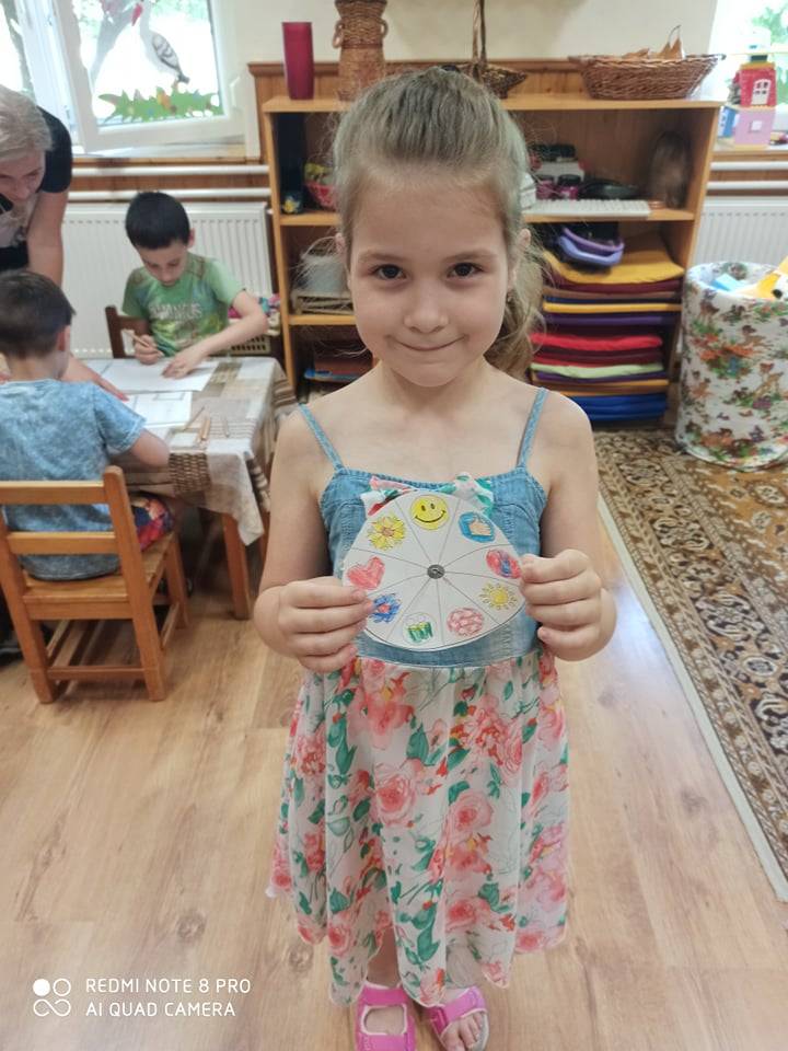 A Ficánka nagycsoportban, e nevelési évtől került bevezetésre a boldogságóra – foglalkozások témái, amit kezdettől fogva nagyon szerettek és értékeltek a gyermekek. Minden boldogságórának pozitív hozadékát igyekeztünk elmélyíteni és a mindennapokban alkalmazni. A fenntartható boldogság tartalmi elemei szinte összegezték a gyermekek számára azokat az értékeket, amiket ezidáig magukévá tettek. A közösségi összekapcsolódás, az erkölcsi értékrend, szocializációs folyamatok, a pozitív – negatív megtapasztalások által a gyermekek eljutottak arra a szintre, hogy a fenntartható boldogságot a továbbiakban is gyakorolják, alkalmazzák. A foglalkozást a kedvenc relaxációs gyakorlatukkal, ami az Összehangoló 1-2-3 volt … kezdtük, majd a Szeretetfolyosó, Bezzeg Andrea – Boldog erdő-Kerekerdő meséje, valamint a Seprűtánc, a Boldogság kerekének kiszínezése , mindezek összegezték az elmúlt időszak tartalmiságát.