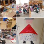 A dominónap alkalmából különböző dominóépítményeket építettünk, amelyekbe még lámpásokat is elrejtettek a gyerekek, vagy így november vége felé a testünk témakört körüljárva rakták egymást ki dominókockák segítségével.