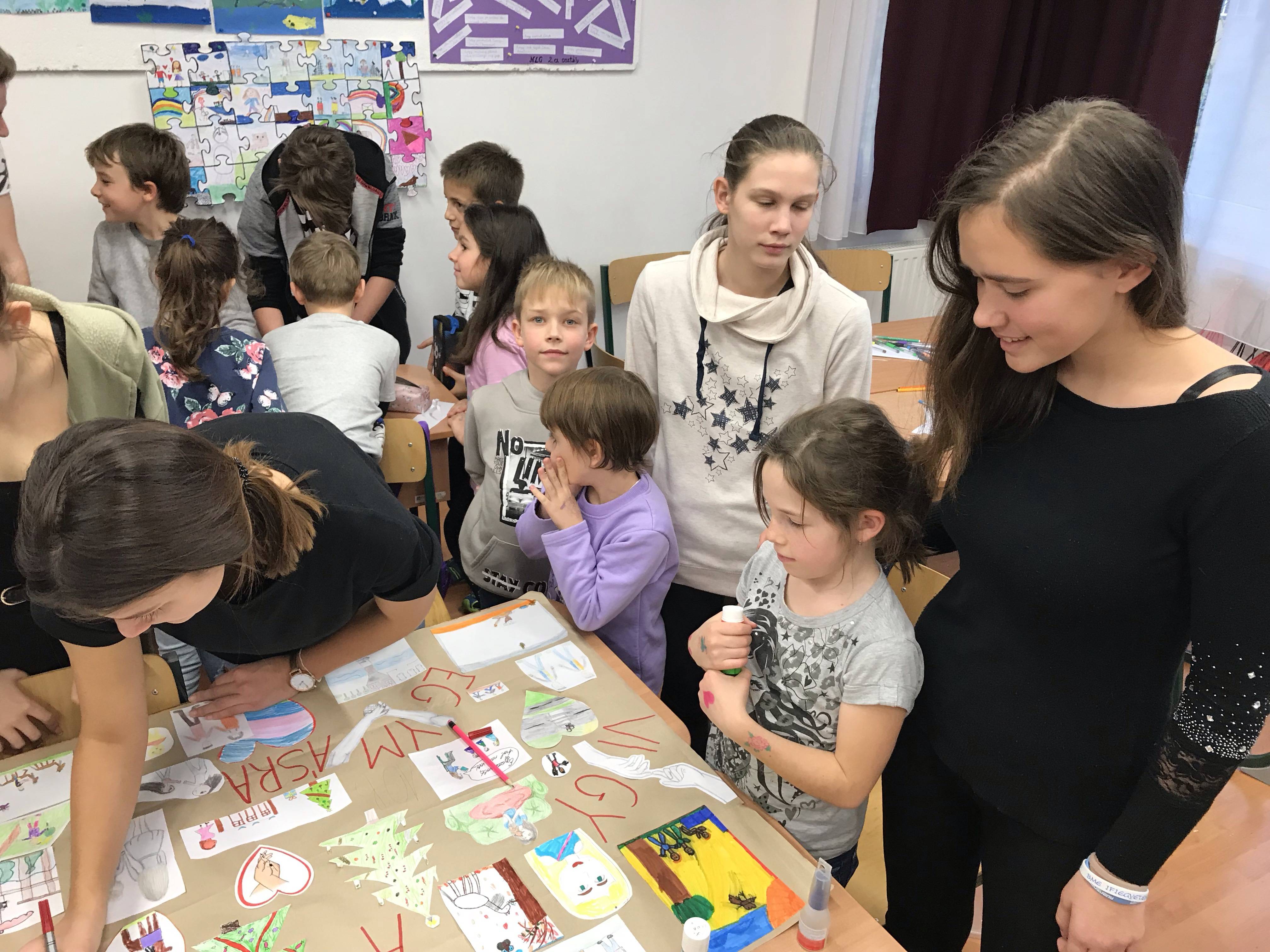 A társas kapcsolatok témát a 10.b osztállyal közösen dolgoztuk fel, ők a mi testvérosztályunk. Az elmúlt tanév óta segítik a kisebb társaikat, nagyon sok, szép közös programot éltünk át együtt.