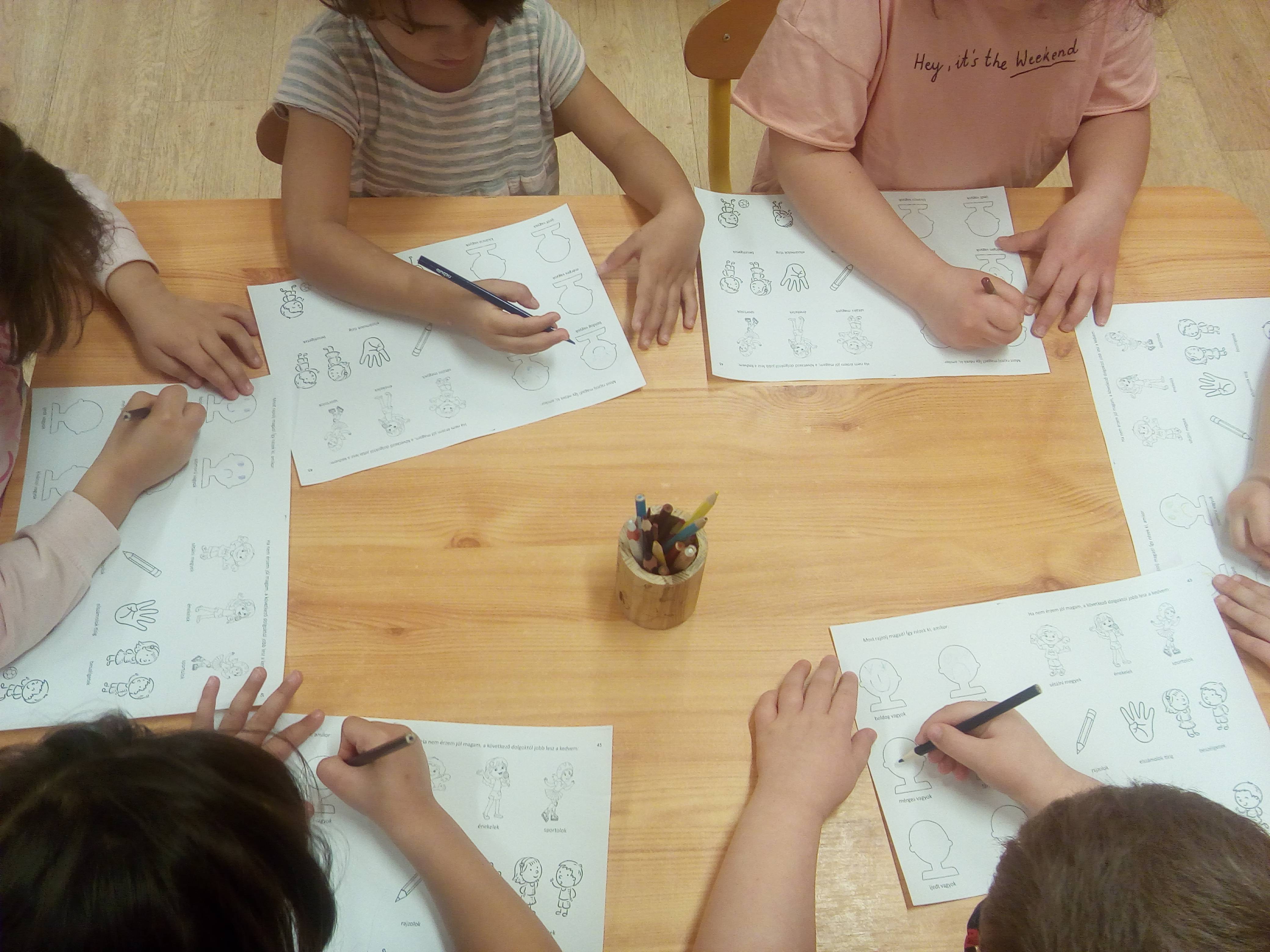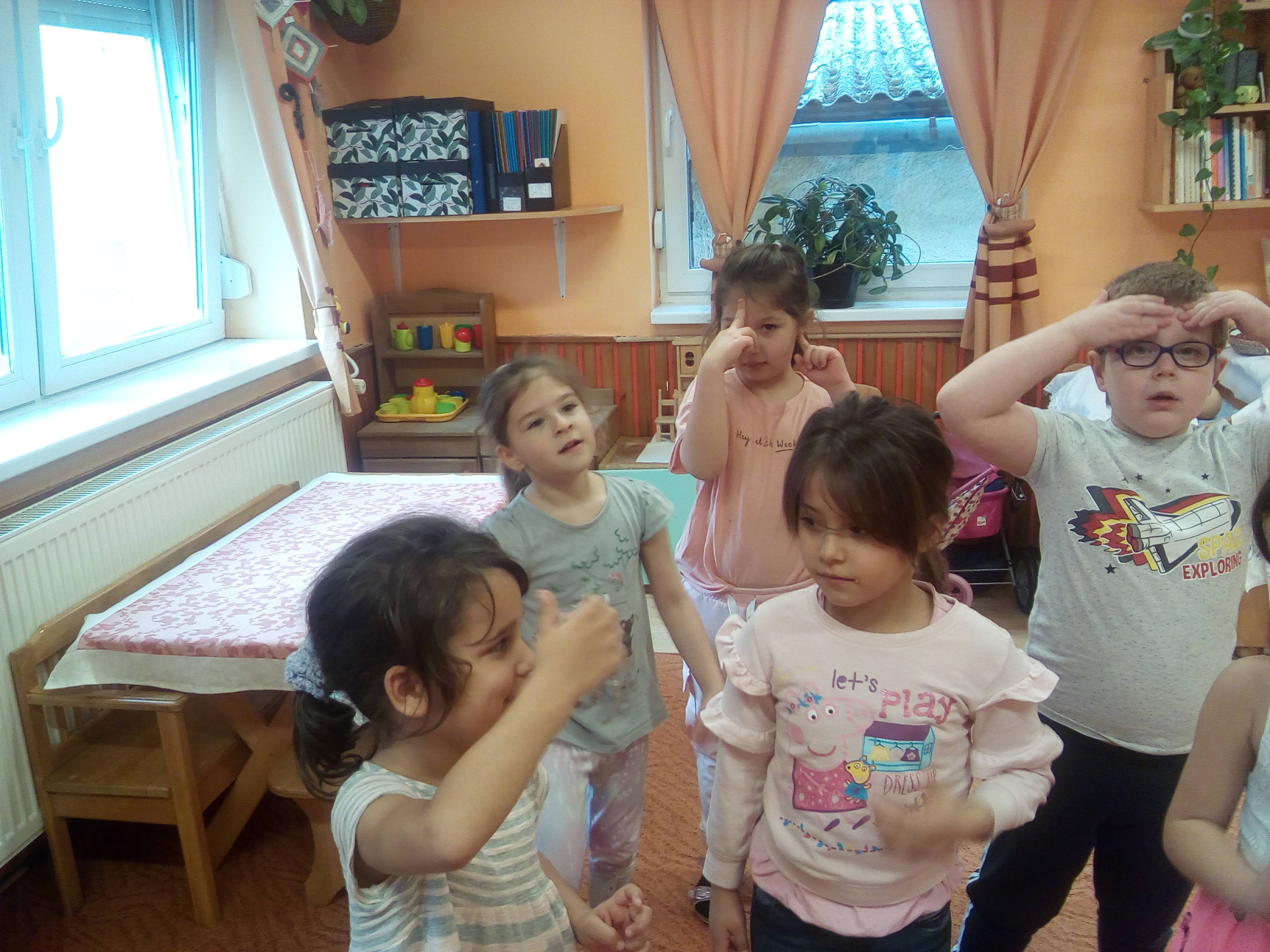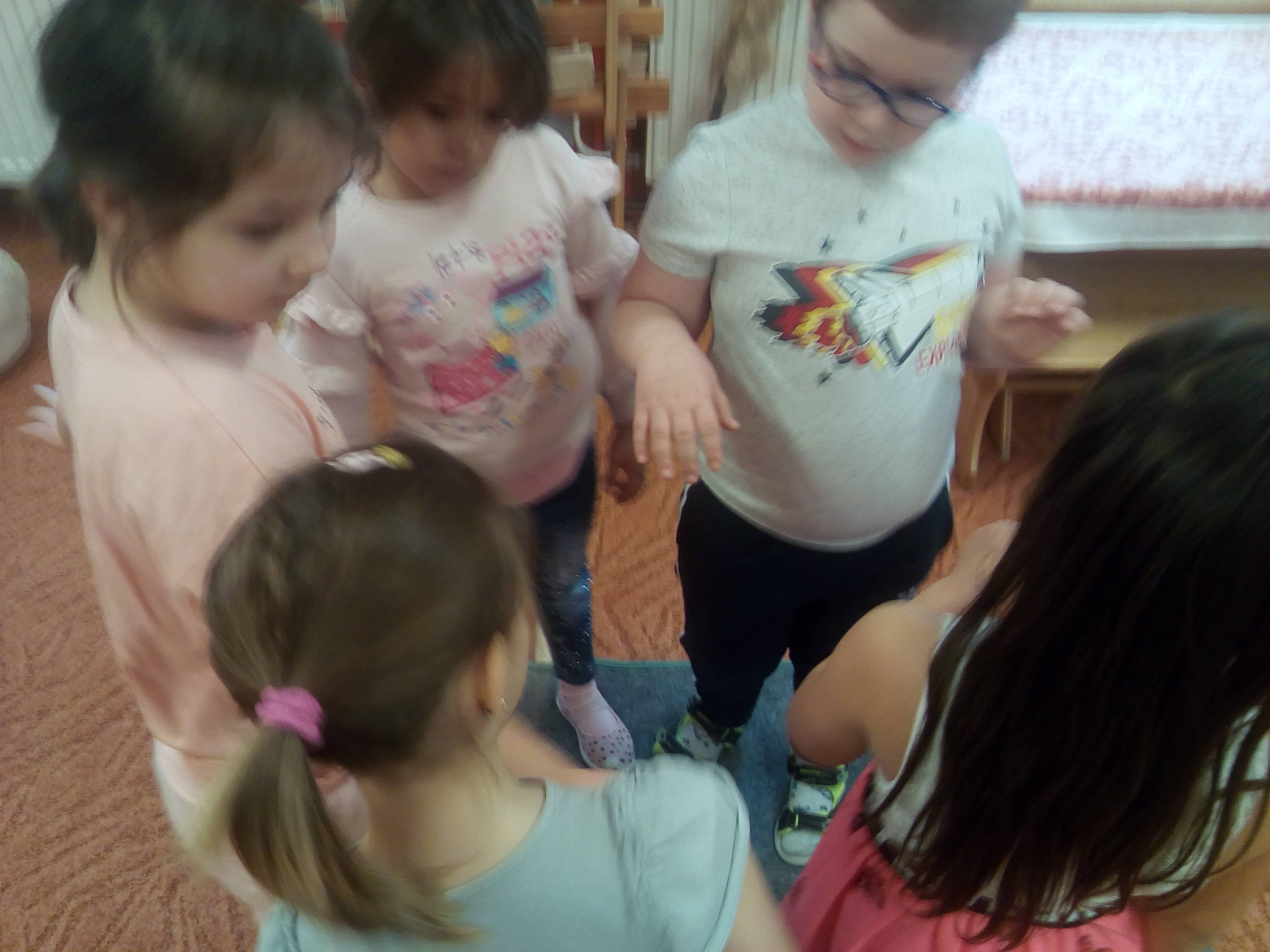 A kezdôdik relaxàciós gyakorlatot követôen, teljesen ellazultunk Bagdi Bella: Ellazulni jaj de jó címû dalàban követett mozdulatoktól. A különleges levelünket elolvastuk, követtük az utasítàsokat, kincset kerestünk ès megküzdöttünk együttes erôvel a csoportból hiànyzó jatèkèrt mit Pók nèni eldugott. Èrzelmeinket megjelenítettük, ahogyan arcunkon is làthatjuk. Kiszineztük ami jobb kedvre derítô erôvel rendelkezik szàmunkra. Közösen megküzdöttünk egy óriàs torony sikeres megèpítèsèvel, ès tengeri tutajunkon együttmaradtunk, senkit nem kapott el a càpa. Megismertük a megküzdès jelèt, zàràskèpp közös tànccal zàrtuk a tèmàt. Megèltèk a gyermekek ezen jàtèkokon keresztül az együttjàtszàs sikerèlmènyeket. Erôsödött „Mi tudtuk” s az èrzès bennük, hogy meg lehet küzdeni együttesen mindenèrt.