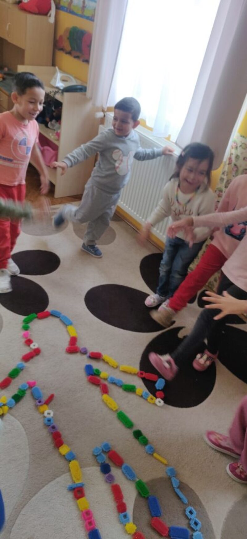majd ő járt körbe tovább a bábbal.Aztán elkezdődtek a próbák.Új kapcsolatok alakultak ki a zene mindenkit összekötött.A közös dolog elősegítette a befogadást.A nem szereplő gyerekekkel kis barátom kirakót játszottunk.A játék segítette a gyerekek közti kapcsolatfelvételt.Szavak nélkül előtérbe helyeztem az odafigyelést egymás felé fordulást. Megfogalmaztuk, hogy egy kapcsolat ,barátság mindig egyre erősebb láncszem ,ha igaz.Beszélgettünk arról,hogy mindenki szeret kirakózni,de azért különbözőek vagyunk .,,Van aki ihat tejet és van aki nem ehet cukrot.Van akinek van testvére és van akinek nincs.”.Olyan dolgokat soroltunk fel amit nem làthatunk.Miben különbözünk és miben vagyunk egyformák.Pl:Az öltözködést láthatjuk.Célom volt,hogy a gyerekek számàra természetes legyen az ember sokféleségének elfogadása.Erre a beszélgető kör jó alkalom volt.Majd meghallgatták a Döbrentey Ildikó meséjét a másság szépségéről.Bagdi Bella;A boldog születésnapot című dalára táncoltunk.Felemelő érzés volt,minden gyerek számára amikor barátságot kötöttek Bolhicirmivel a Táncoló Tappancs Turnén.A mi barátságunk,kapcsolataink sokszínű,éppen ettől szép a világ.Az ünnepségen a szülők nagyon boldogok voltak ,hiszen egy új kis közösség alakult ki akik nagyon ügyesen szerepeltek.