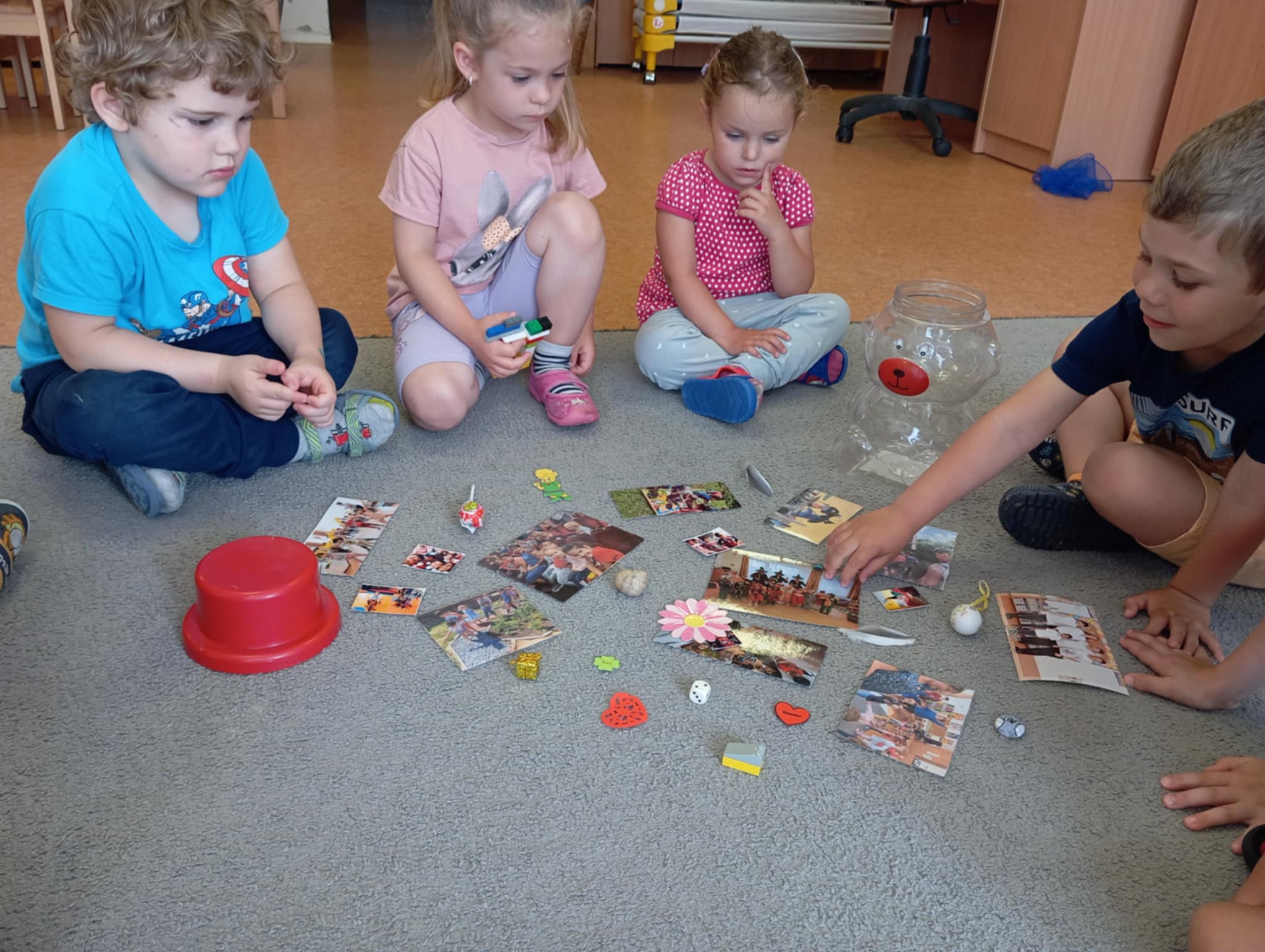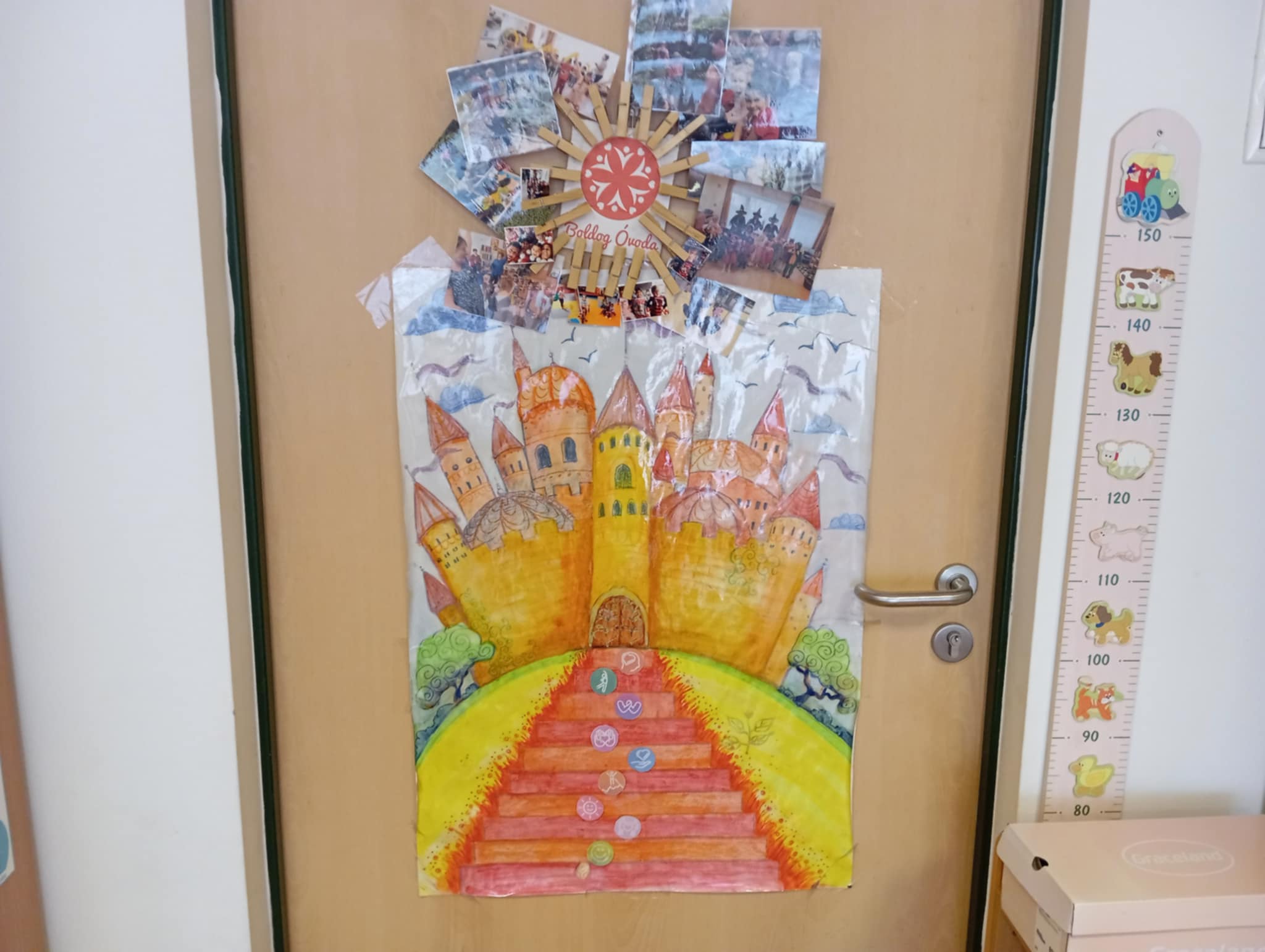 Elérkeztünk a Boldog vár utolsó lépcsőfokára! A tanév során egy macis üvegben gyűjtöttük össze az adott hónapban történt dolgok boldog emlékeit. Fényképeket és más apróságokat: hála kavicsot, karácsonyfa díszt, kis húsvéti tojást, anyák napi szívet, „mérgelődős polipot”, ballagási emléket, Duna-parti csigaházat, játszótéri galambtollat, vízen nyíló „bocsi-virágot”. Az üveget most együtt kiborítottuk a szőnyegre és az emlékeket átválogatva felelevenítettük mi is történt a tanév során. Elővettük az érzelem kendőket, játszottunk hála-játékot (zenére táncoltunk, ha elhallgatott a zene, két-három gyerek mindig elmondta, miért hálás). Fölelevenítettük a céljainkat, ki mi szeretne lenni nagy korában. Szívet adott mindenki a barátjának. Versenyeztünk, ki fújja el előbb a felhőt a napról. A polippal fölelevenítettük, hogy tudjuk a mérgünket legyőzni, lassú légzéssel és a polip erős megszorításával. Fölidéztük az ünnepeket, eseményeket. Végül elmeséltem az Ubuntu című mesét. Komolyan elgondolkodtak azon, hogy mások hogy nem vetélkedtek, küzdöttek a sok édességért. Megfogadták, hogy ők is összefognak és védik egymást, együtt játszanak. A következő napokban az ovi együtt kirándult Budapestre, játszóházba vittük a gyerekeket a februári jótékonysági bál bevételéből, így a szülőknek nem került pénzbe ez az út. pár nap múlva a csoportunk ment kirándulni a decemberben tartott sütivásár bevételéből Domboriba, a Duna-partra szülőkkel együtt játszani, pizzázni. A gyerekek így át is érezhették a valóságban is, hogy összefogva, együtt könnyebb és együtt elértünk a Boldog várba, és elkezdődik a nyár! Szerintem ennél több ebbe a tanévbe nem is fér már! Mindenkinek jó nyaralást kívánunk!