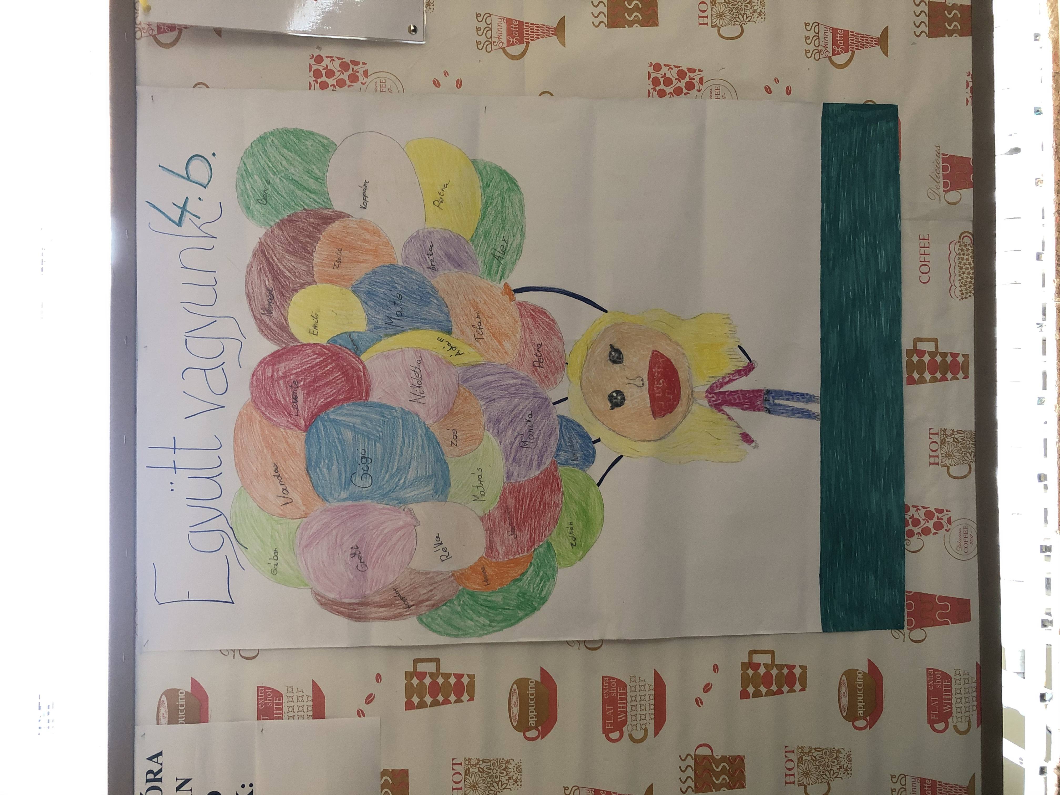 Egy gyermek/ tanító nénit jelképezi/ 30db lufit tart a kezében/osztály/