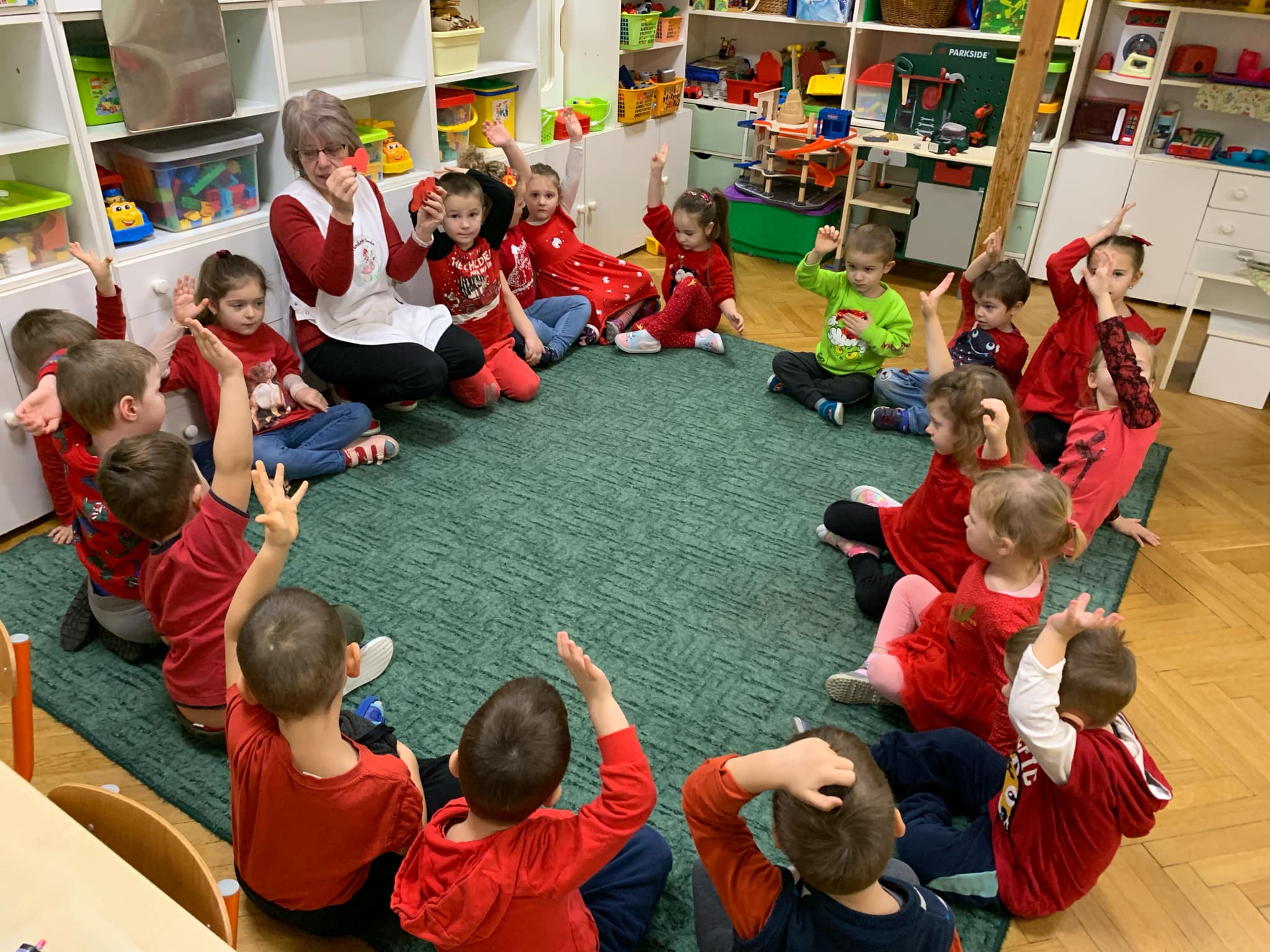 A hosszú szünet után nagy örömmel érkeztek a gyerekek az óvodába. A karácsonyi élmények beszámolója után a Boldogság Programunk következő feladatait beszéltük meg. Boldog Dóra bábunk minden tevékenységünk előtt beszélgetett a gyerekekkel. Több célt is kitűztünk erre a hónapra. Színes hetet tartottunk, melyre a szülőkkel együtt készültünk, bevonva őket is a témánk feldolgozásába. Mindennap olyan színű ruhába érkeztek a gyerekek, mely az adott napra volt jellemző. A következő célunk táncosok fogadása volt. Vannak bátortalan gyerekek a csoportunkban, ezért nagy odafigyeléssel fordultunk feléjük, hogy ez a célunk is teljesülni tudjon, hogy örömmel vegyenek részt ezen a programon. Motiváló hatása volt a Boldogság szívecskének. Ezt megelőzte, hogy mindenki „megkereste” hol dobog a szíve. „Add tovább” játékunkhoz is a szívecskét használtuk fel.