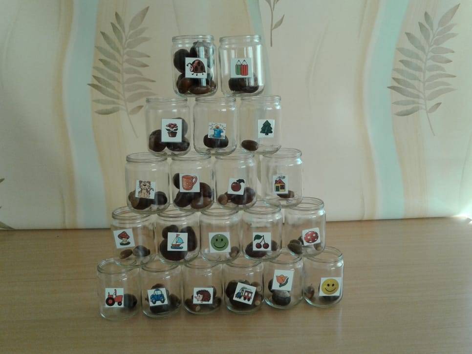 • 2 nap is azt játszottuk a hála dala meghallgatása után, hogy hála gesztenyéket egymásnak adtak a gyermekek, jellel ellátott kis üvegekbe gyűjtve, és megfogalmazva azt, hogy miért hálásak annak, akinek adták. Érdekes módon alakult, kik kaptak többet, kiknek jutott kevesebb. Szerencsére senkinek nem maradt üres az üvege! 🙂