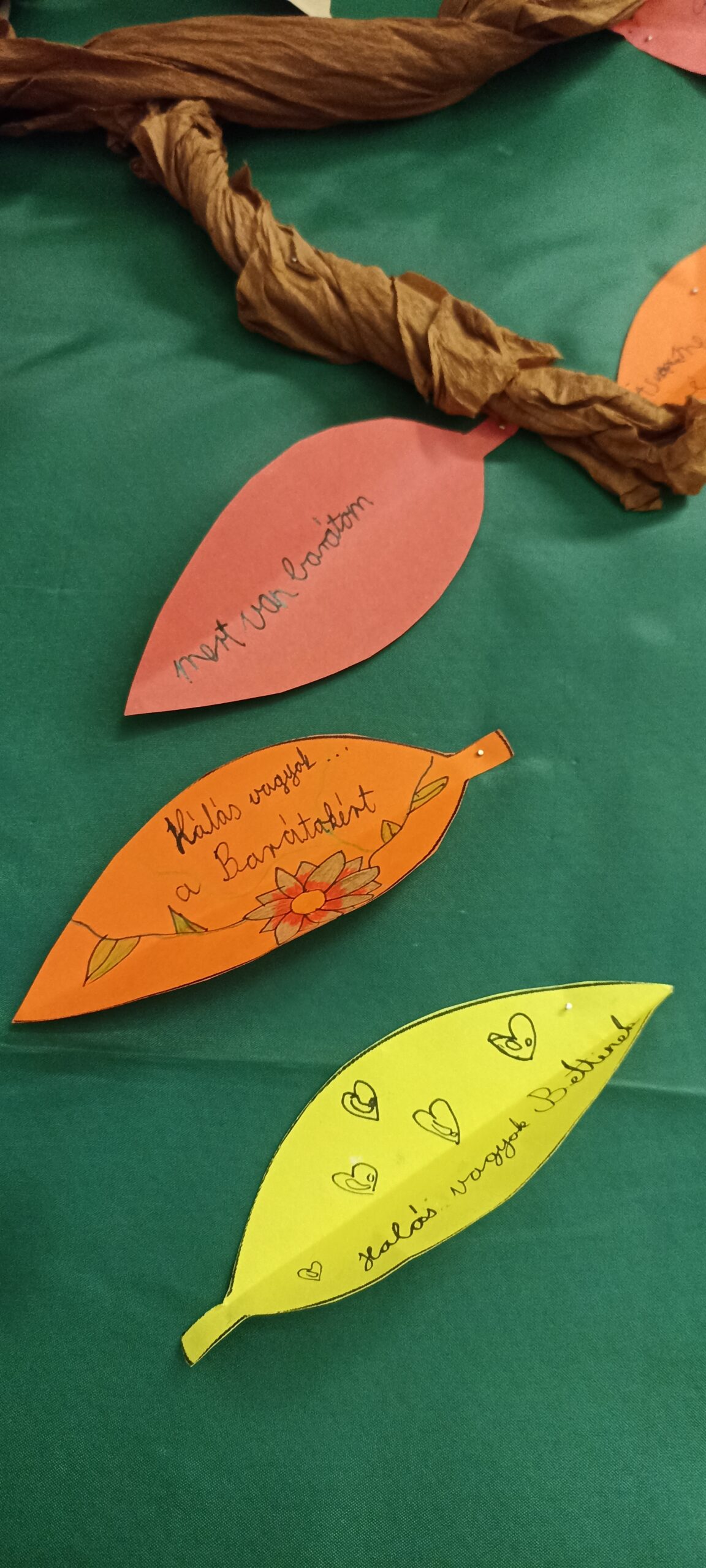 Első Boldogságóránkra szeptember 24-én került sor negyedikes osztályunkkal. A gyerekek nagyon élvezték a változatos munkaformákat, az őszi levelek színeivel készült hálafa pedig különleges ékessége lett a termünknek.