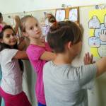 Nagyon gyosan eltelt ez az év! fogalmazta meg véleményét egyik tanítvánom. Én is így érzem. Ismét arról beszélgettünk ezzel az „új csapattal”, hogy mit is tanultunk, tapasztaltunk ezeken a foglalkozásokon. Elővettük az elkészített anyagainkat, képeket, plakátokat és nosztalgiáztunk egy kicsit. Azután kivonultunk a folyosónkra, és a nyári felújításra már előkészített falakat az évzáróig elfedtük a felragasztott plakátokkal. Az egyik apuka megis találta magát az egyik rajzon, mint a kislánya hőse, és egy nagy puszi lett a kép jutalma.