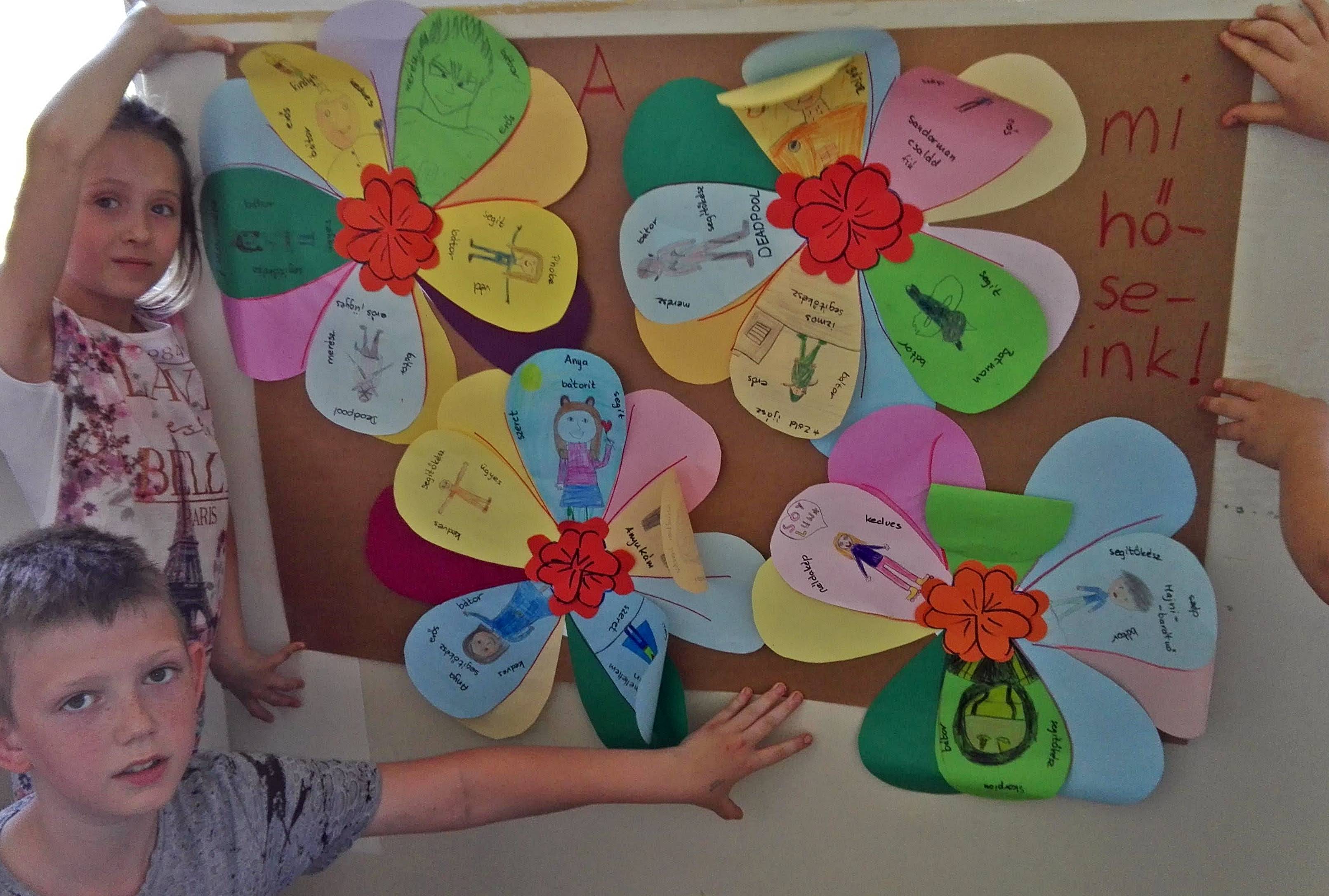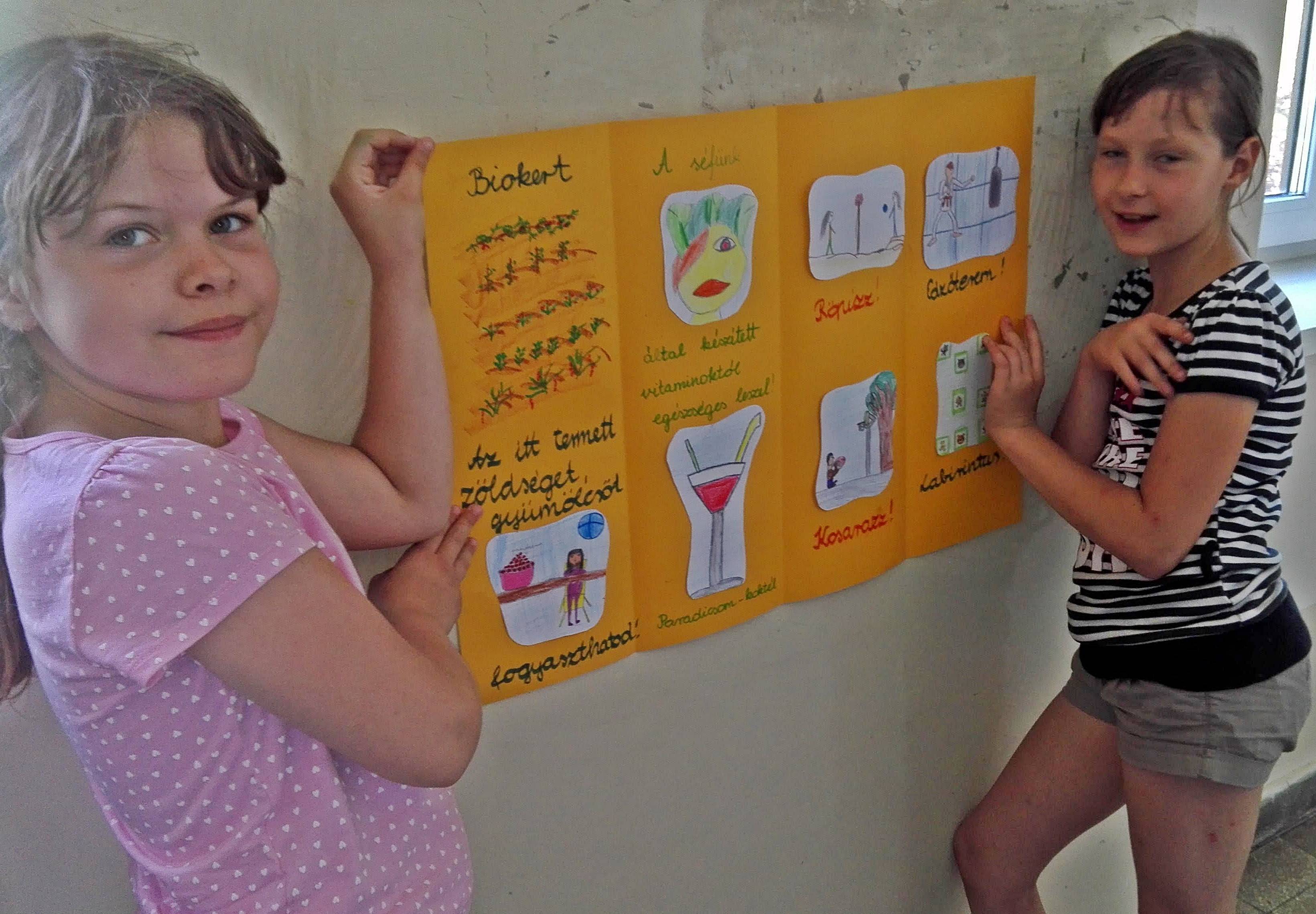 Nagyon gyosan eltelt ez az év! fogalmazta meg véleményét egyik tanítvánom. Én is így érzem. Ismét arról beszélgettünk ezzel az „új csapattal”, hogy mit is tanultunk, tapasztaltunk ezeken a foglalkozásokon. Elővettük az elkészített anyagainkat, képeket, plakátokat és nosztalgiáztunk egy kicsit. Azután kivonultunk a folyosónkra, és a nyári felújításra már előkészített falakat az évzáróig elfedtük a felragasztott plakátokkal. Az egyik apuka megis találta magát az egyik rajzon, mint a kislánya hőse, és egy nagy puszi lett a kép jutalma.