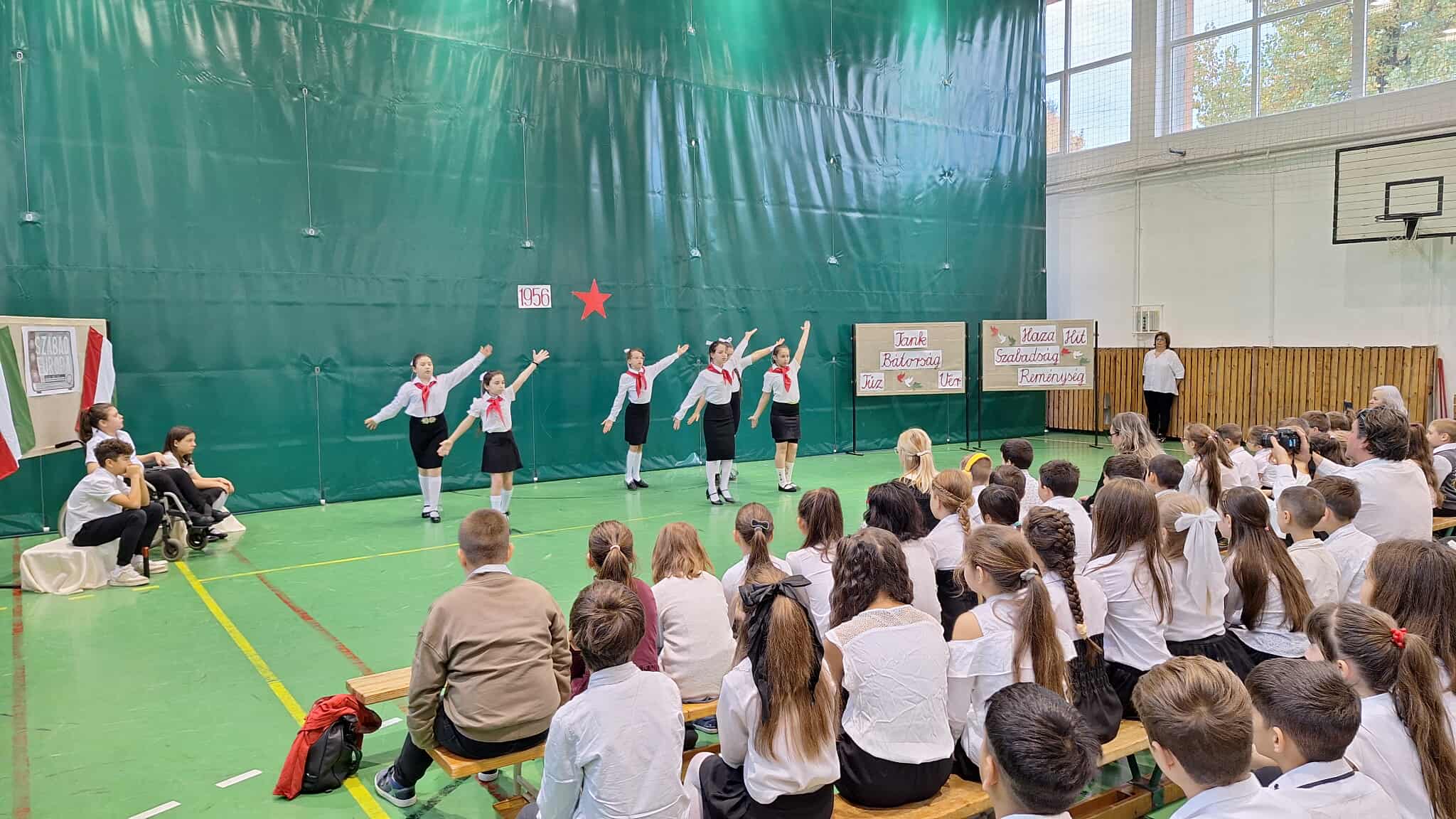 Iskolánkban készítettük a megemlékezést, amelyen a II. Rákóczi Tagiskola felső tagozatos diákjai léptek fel. Sok próba előzte meg a műsort. Nem volt könnyű összeegyeztetni az időpontokat, de minden fáradságot megért.
