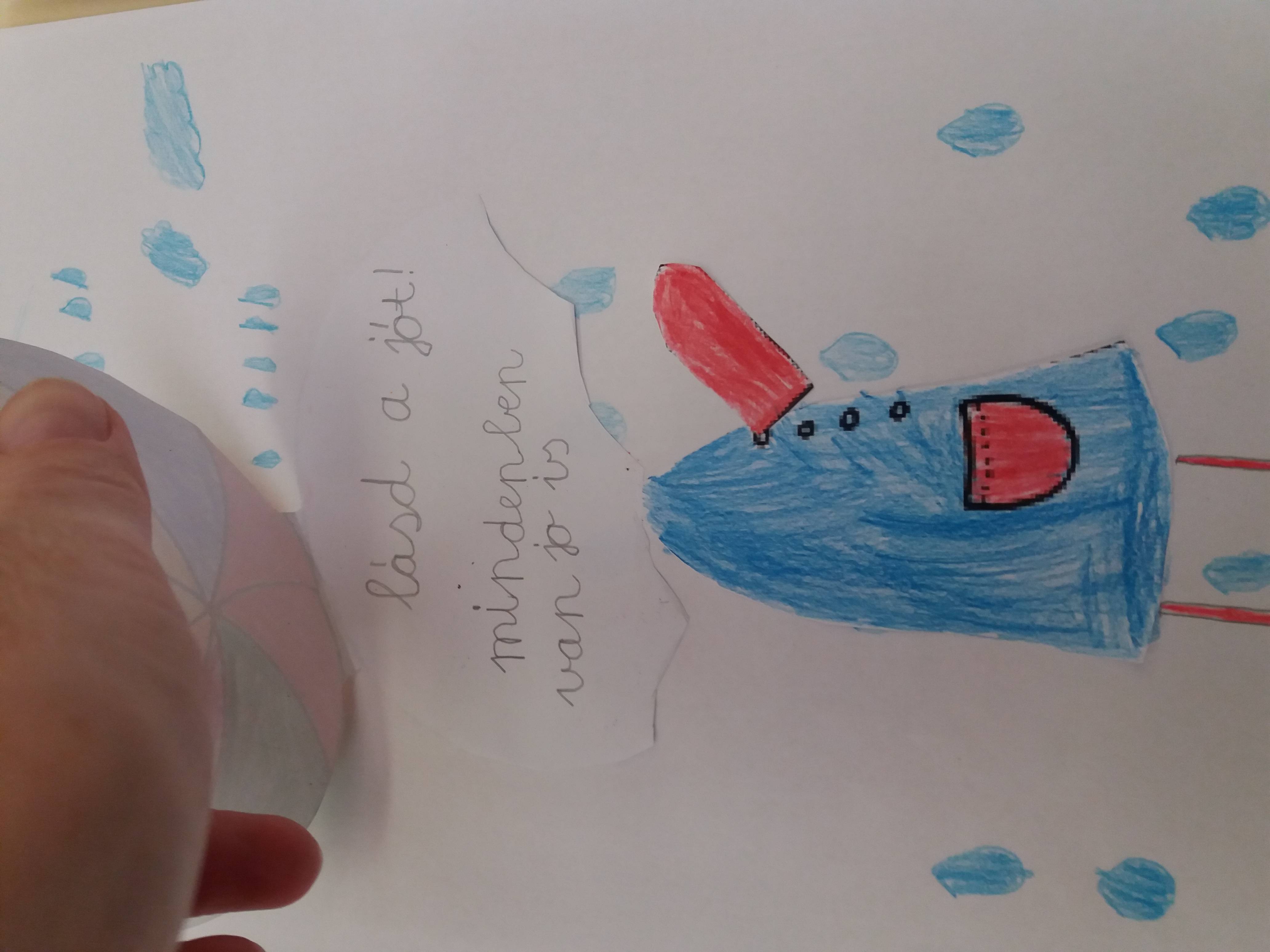 Az esőt választottuk a megoldandó helyzetek szimbólumaként, adtunk hozzá egy szivárványos esernyőt, hogy színeivel bátorítson, és egy rejtett üzenetet, melyet mélyen a szívünkbe véstünk. Nekünk ez a stratégiánk! 🙂