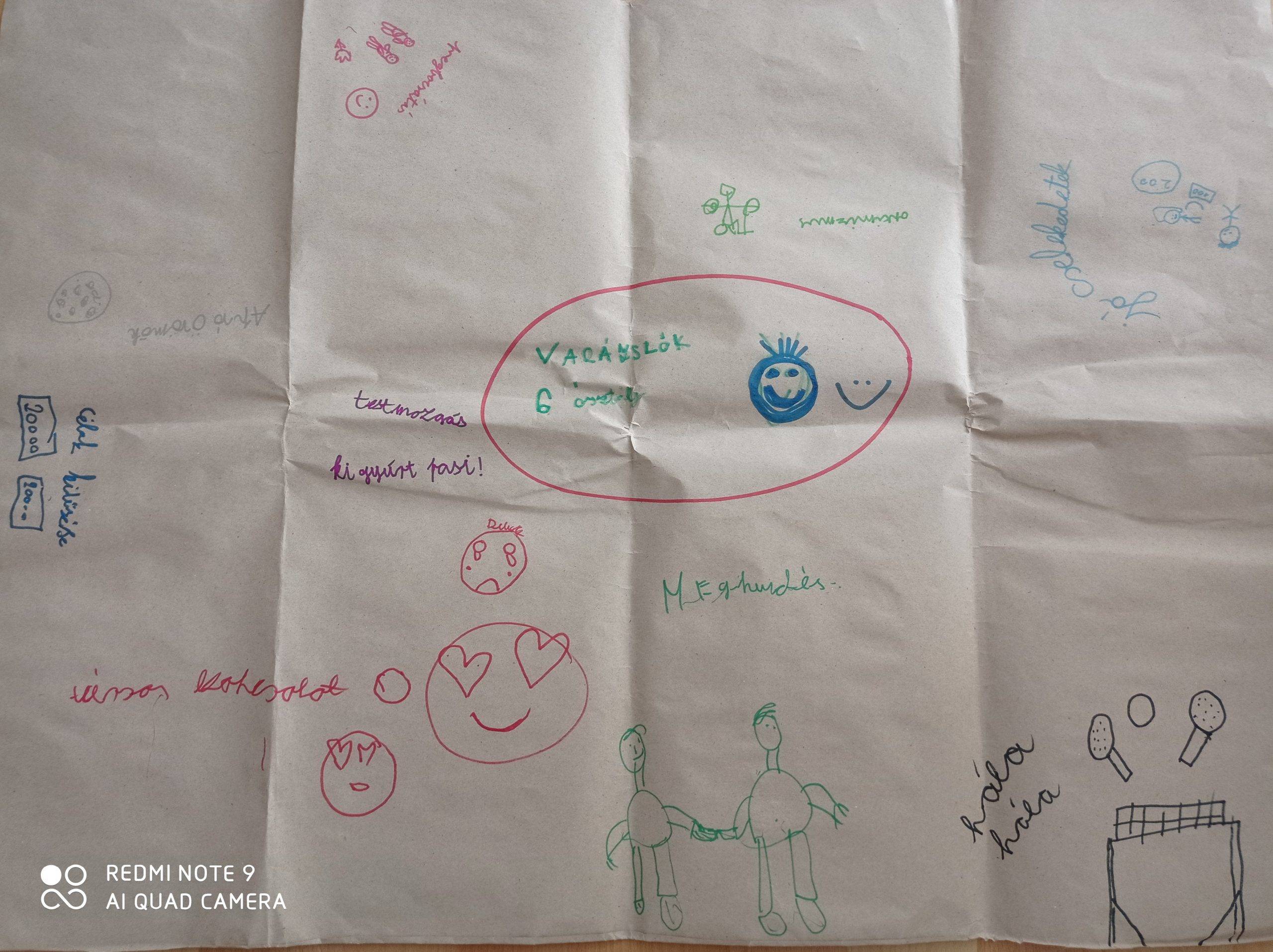 Elérkeztünk az utolsó hónaphoz, amikor visszatekintettünk a tanév legemlékezetesebb pillanataira. Felelevenítettük az általunk megismert és feldolgozott témaköröket. Az emlékeinket rajzban örökítettük meg. Két csoportban készítettük el a közös tablónkat. Magunk is elcsodálkoztunk azon, hogy milyen sok közös boldogságórás élménnyel gazdagodtunk. Búcsúzóul egymásnak kívántunk pozitív üzenetet a nyári szünetre.