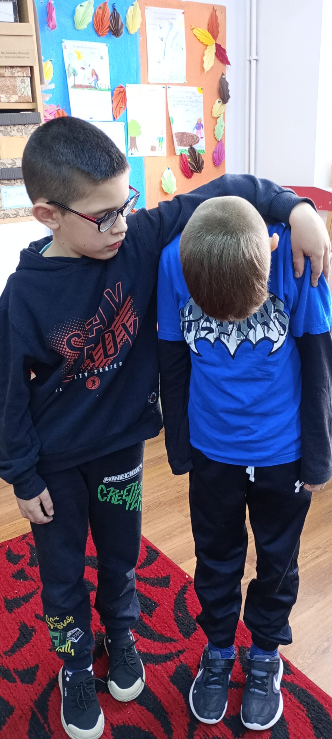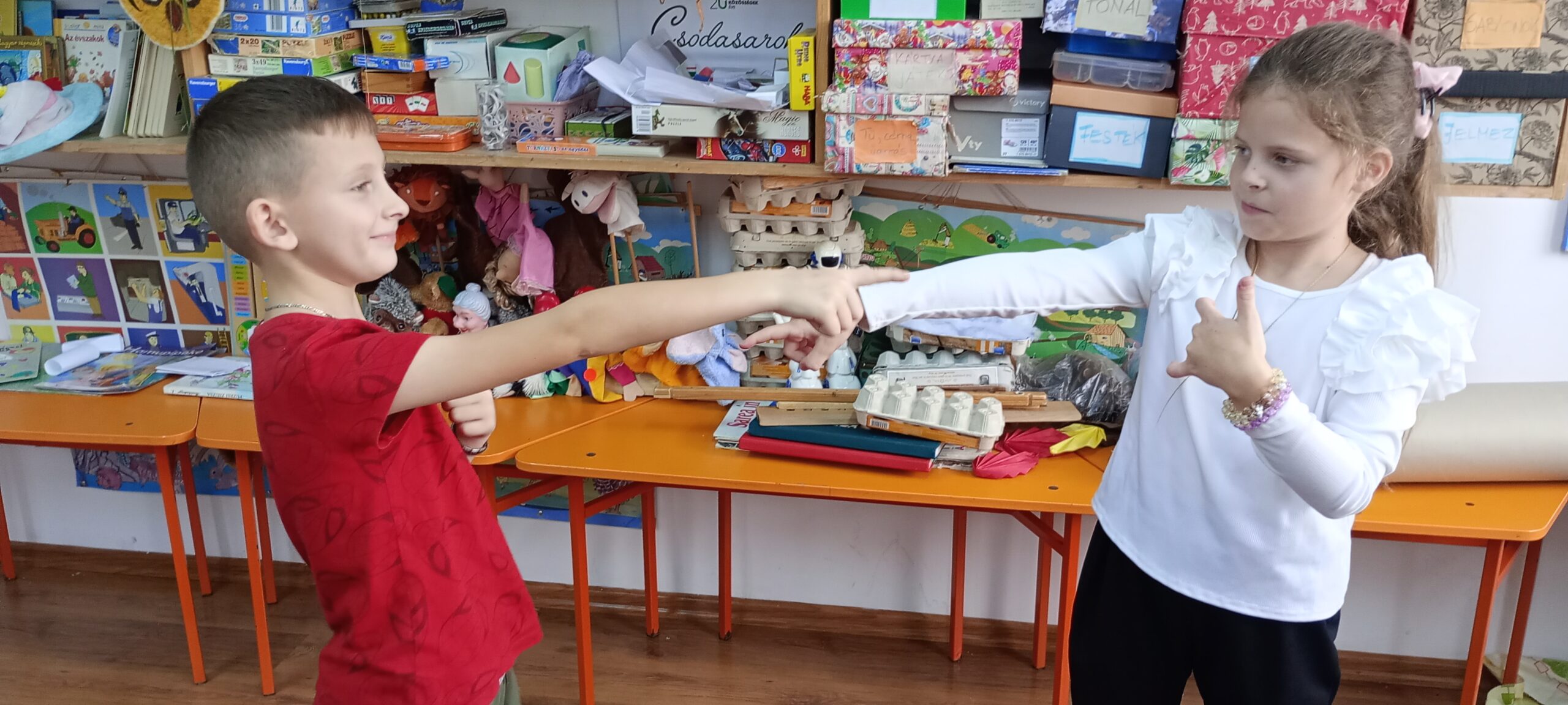 A barátsággal folytattuk a munkát, és a barátok különböző érzelmi helyzetét párban bemutatták 1-1 szoborral, a többiek pedig kitalálták a szobor témáját. Nagyon szerették ezt a gyakorlatot.
