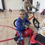 A mai Boldogságóra során az apró örömök felismerésére és megélésére helyeztük a hangsúlyt a gyerekekkel. A foglalkozás célja az volt, hogy a gyerekek megtapasztalják: a mindennapi egyszerű tevékenységek – mint a mozgás vagy az alkotás – is örömforrást jelenthetnek számukra. A tevékenységek során kiemelt szerepet kapott a szabad mozgás, az együttjátszás, valamint az alkotás örömének megélése. A ráhangolódás során rövid, egyszerű beszélgetést kezdeményeztem arról, hogy mi az, amit szeretnek csinálni, mi okoz nekik örömet a mindennapokban. A gyerekek kommunikációs szintjüknek megfelelően kapcsolódtak be: volt, aki szóban válaszolt, mások gesztusokkal, mimikával vagy rámutatással fejezték ki magukat. A fő tevékenység során a gyerekek motorozhattak, valamint építőkockákból tornyot építettek. A mozgásos tevékenység során jól megfigyelhető volt a felszabadultság, az öröm megélése, valamint az aktivitás öröme. A motorozás lehetőséget adott a feszültség levezetésére, a sikerélmény megélésére, valamint az önálló cselekvés gyakorlására. Az építő tevékenység során a gyerekek tornyokat építettek, amely során megtapasztalhatták az alkotás örömét, a próbálkozás és az újrakezdés lehetőségét. Több esetben spontán együttműködés is kialakult, a gyerekek figyelték egymás tevékenységét, és örömmel reagáltak a másik sikerére. A torony ledőlése sem okozott tartós frusztrációt, inkább újabb próbálkozásra ösztönözte őket, amely szintén az élményszerű tanulást erősítette. A foglalkozás során folyamatosan megerősítettem a gyerekeket abban, hogy ezek az egyszerű tevékenységek is örömet adhatnak számukra. Rövid, egyszerű mondatokkal segítettem az élmények tudatosítását, például: „Ez jó érzés.”, „Örülünk, hogy játszunk.”, „Ügyesen építed.” A foglalkozás végén rövid, Bella látogatott el hozzánk. A gyerekek leültek a szőnyegre, egy rövid mesét hallgattak meg Bellától.