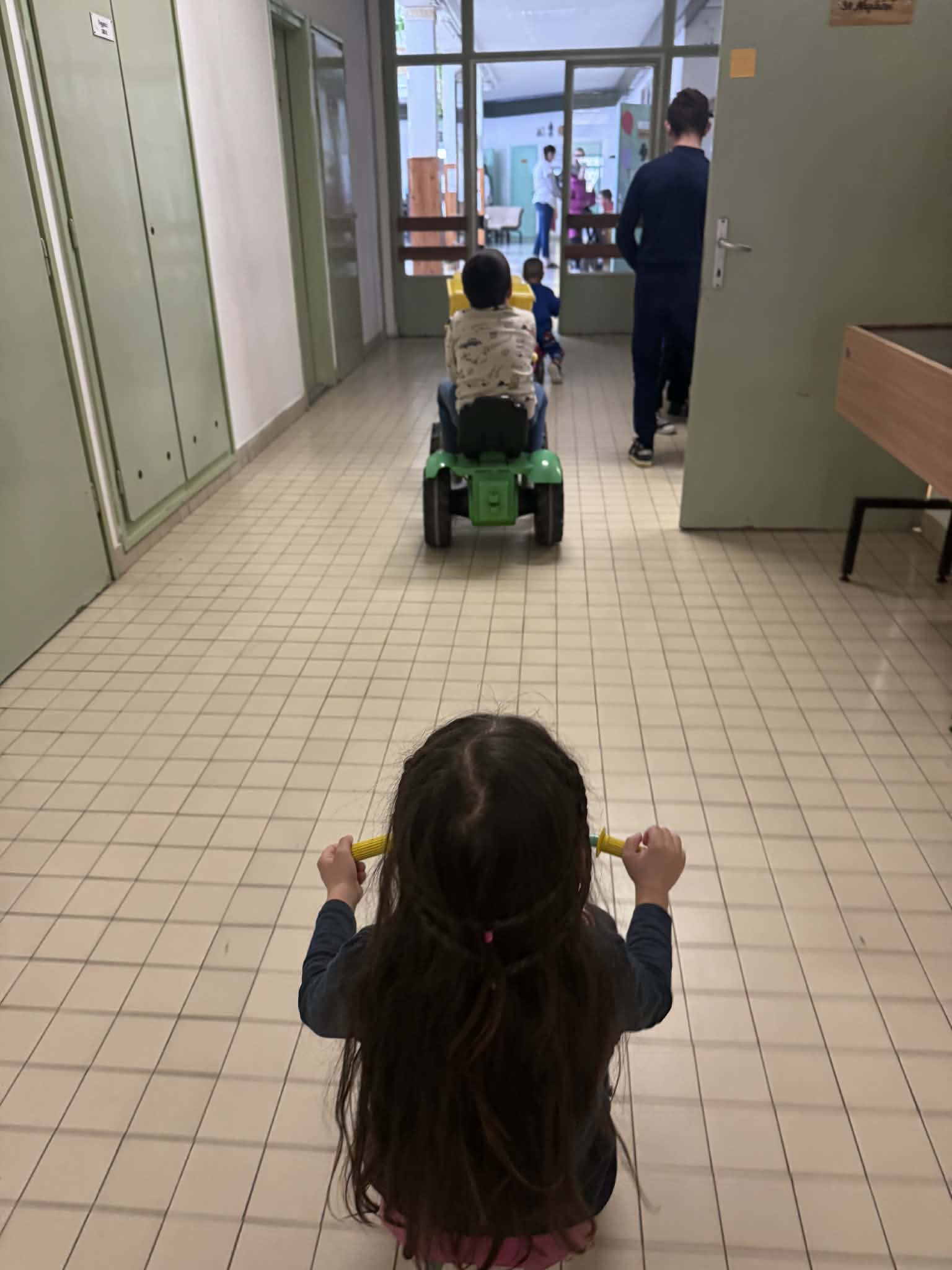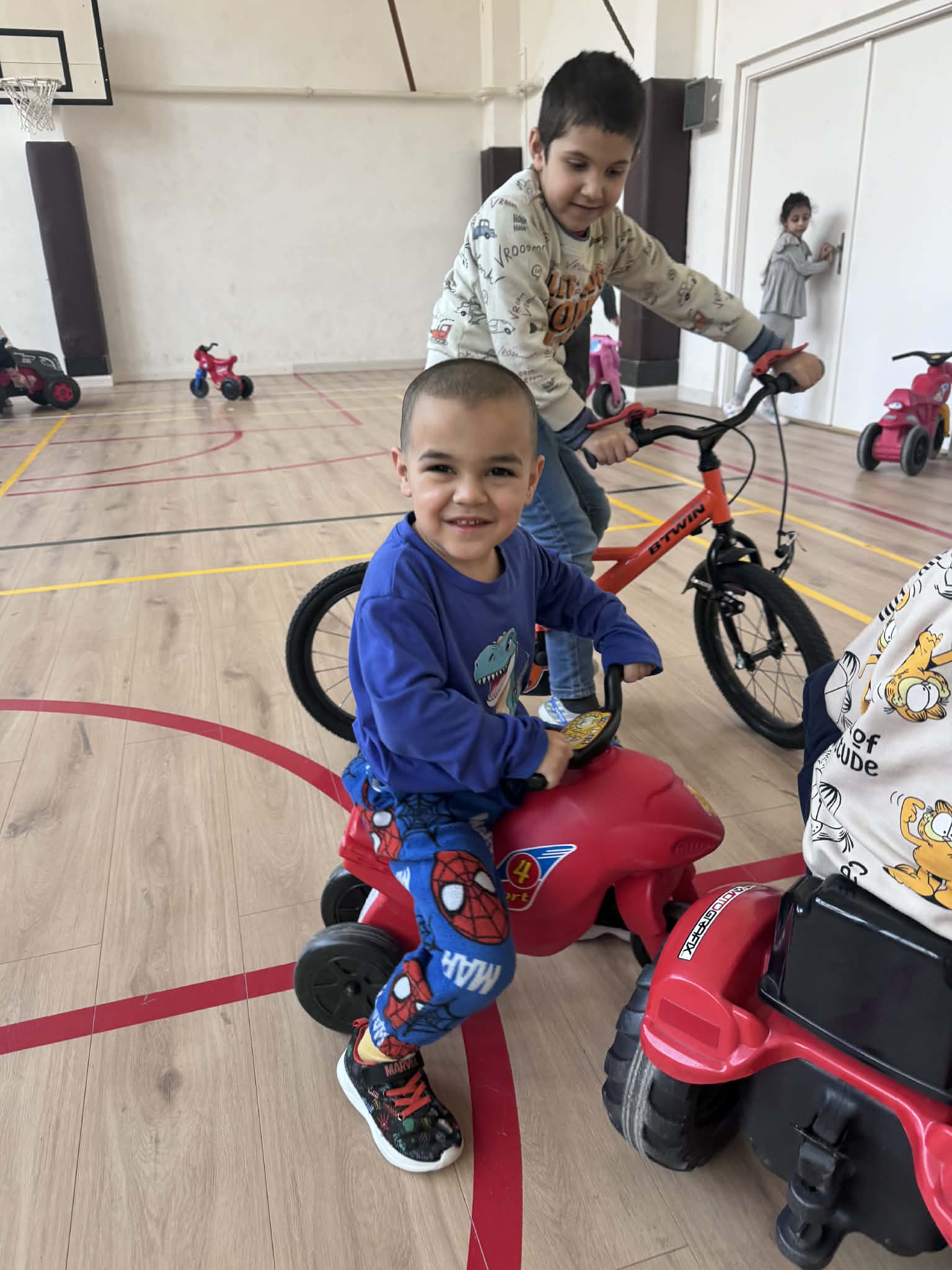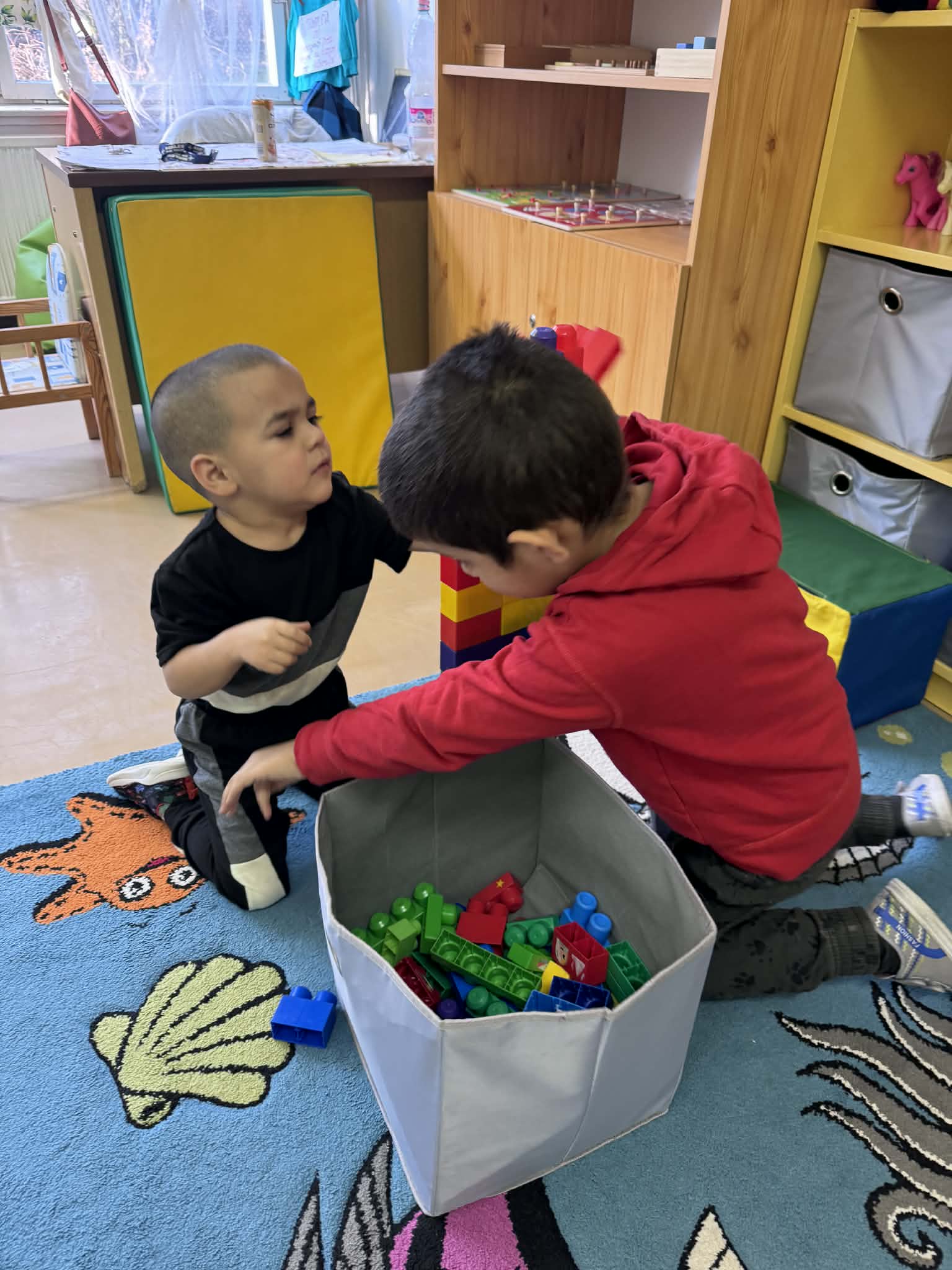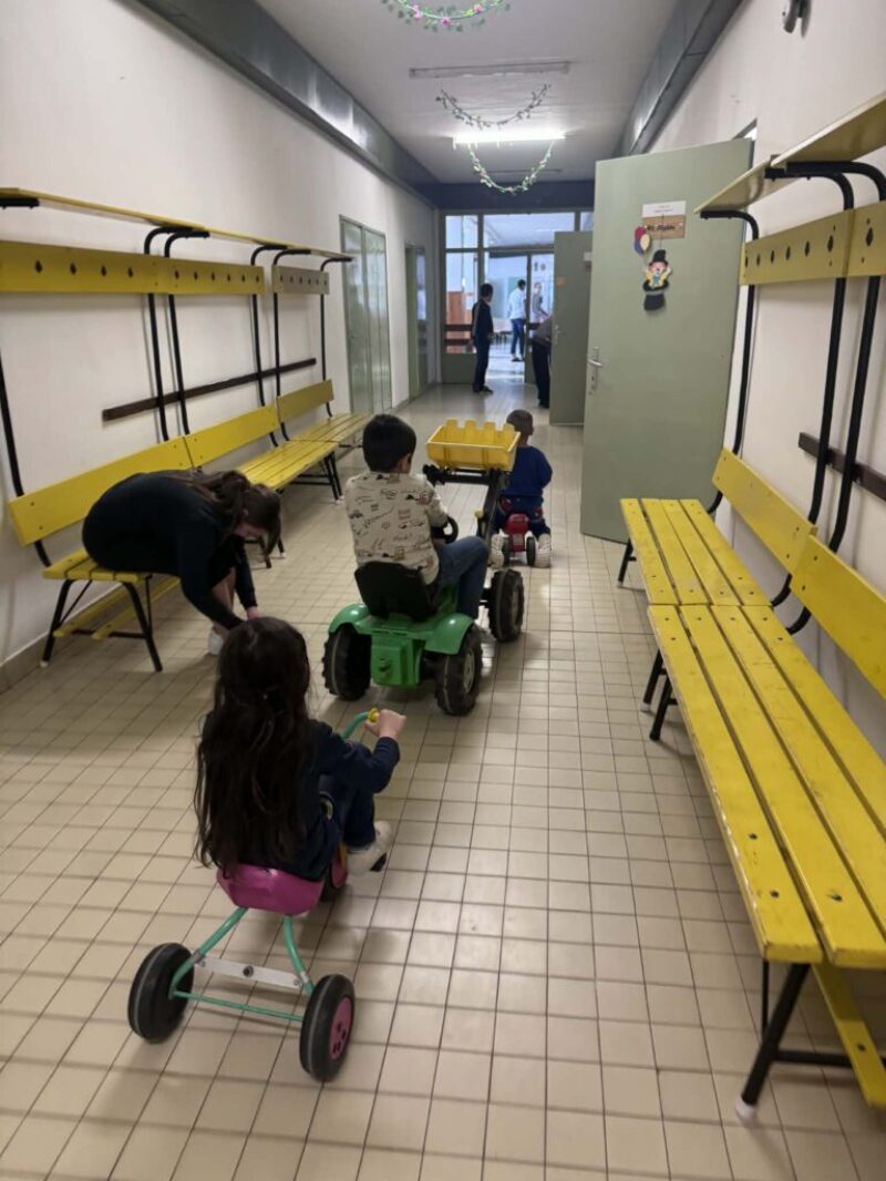 A mai Boldogságóra során az apró örömök felismerésére és megélésére helyeztük a hangsúlyt a gyerekekkel. A foglalkozás célja az volt, hogy a gyerekek megtapasztalják: a mindennapi egyszerű tevékenységek – mint a mozgás vagy az alkotás – is örömforrást jelenthetnek számukra. A tevékenységek során kiemelt szerepet kapott a szabad mozgás, az együttjátszás, valamint az alkotás örömének megélése. A ráhangolódás során rövid, egyszerű beszélgetést kezdeményeztem arról, hogy mi az, amit szeretnek csinálni, mi okoz nekik örömet a mindennapokban. A gyerekek kommunikációs szintjüknek megfelelően kapcsolódtak be: volt, aki szóban válaszolt, mások gesztusokkal, mimikával vagy rámutatással fejezték ki magukat. A fő tevékenység során a gyerekek motorozhattak, valamint építőkockákból tornyot építettek. A mozgásos tevékenység során jól megfigyelhető volt a felszabadultság, az öröm megélése, valamint az aktivitás öröme. A motorozás lehetőséget adott a feszültség levezetésére, a sikerélmény megélésére, valamint az önálló cselekvés gyakorlására. Az építő tevékenység során a gyerekek tornyokat építettek, amely során megtapasztalhatták az alkotás örömét, a próbálkozás és az újrakezdés lehetőségét. Több esetben spontán együttműködés is kialakult, a gyerekek figyelték egymás tevékenységét, és örömmel reagáltak a másik sikerére. A torony ledőlése sem okozott tartós frusztrációt, inkább újabb próbálkozásra ösztönözte őket, amely szintén az élményszerű tanulást erősítette. A foglalkozás során folyamatosan megerősítettem a gyerekeket abban, hogy ezek az egyszerű tevékenységek is örömet adhatnak számukra. Rövid, egyszerű mondatokkal segítettem az élmények tudatosítását, például: „Ez jó érzés.”, „Örülünk, hogy játszunk.”, „Ügyesen építed.” A foglalkozás végén rövid, Bella látogatott el hozzánk. A gyerekek leültek a szőnyegre, egy rövid mesét hallgattak meg Bellától.