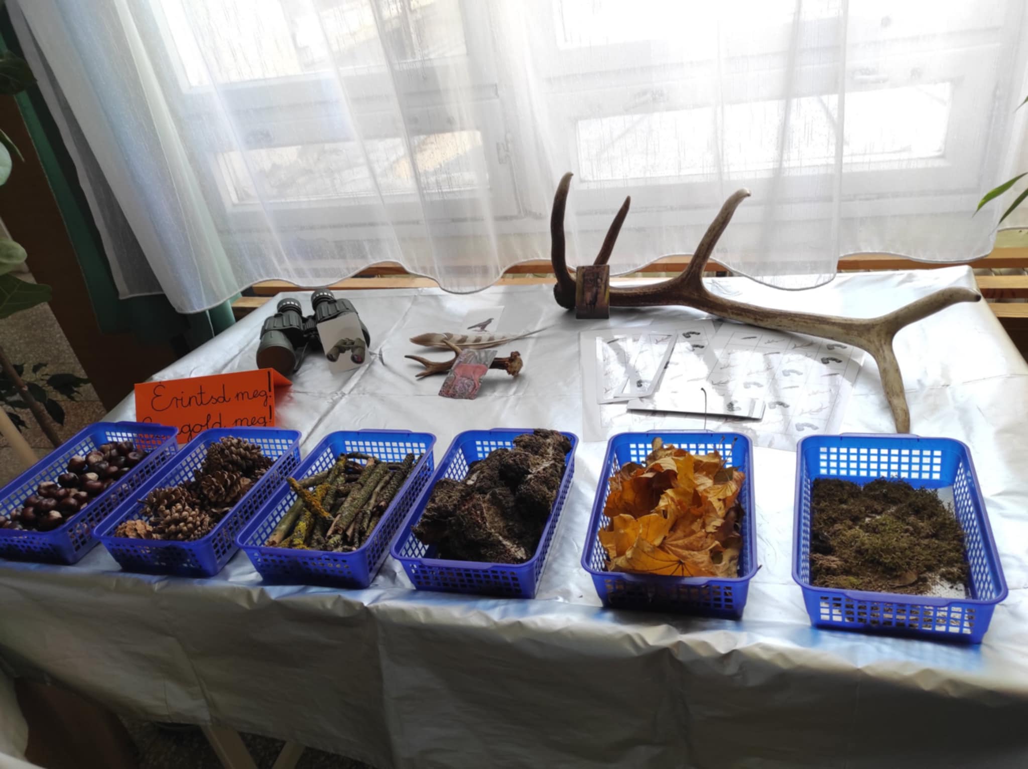 Optimista vagyok, ha a projektoktatásról van szó. Hiszen ez egy olyan lehetőség a pedagógusok számára, mellyel a mai kor gyerekei számára is érdekessé, izgalmassá teszi az oktatást. A tanév során több projektet is megvalósítunk, most már nem csak a saját osztályommal, hanem az egész alsó tagozattal. S hogy mások is megtapasztalják ennek izgalmát, megmutathassuk a projektek során elkészült fejlesztő játékokat, ötleteket, folytatjuk az előző években nagy sikert aratott „Folyosóprojekteket”, ami: tematikus program az alsó tagozaton. A tanév során négy alkalommal (ősszel, télen, tavasszal, nyáron) bemutatót tartunk az alsós osztályokban folyó aktuális projekt megvalósulásáról (folyosó berendezése, megnyitó, fejlesztő játékok bemutatása, eszközök kipróbálása, kincskeresés, beszámoló tematikus napok…) A programban az egész alsó tagozat részt vesz, a négy évszakot felosztjuk az osztályok közt. A Boldogságóra pedig egy egész évet átfogó projektünk, ami szintén helyet kap a bemutatókon, hiszen már régóta arra törekszem, hogy beillesszem a gyerekek mindennapjaiba. Az optimizmust összekapcsoltuk az őszi bemutatóval. Könnyű optimistának lenni a gyönyörű, színes erdőben, kapcsolódni a természethez. Az első projektünk: „Hallgatag erdő” elnevezésű. (Gryllus Vilmos Dala után). Az osztálykiránduláson gyűjtött kincseket felhasználva folyt a „munka” minden tanórán. Különleges élmény volt látni a gyerekek arcát, ahogy megérintették a szarvas agancsát, vagy belenézhettek a távcsőbe. Kitűnően használtuk még mozgásfejlesztésen is.