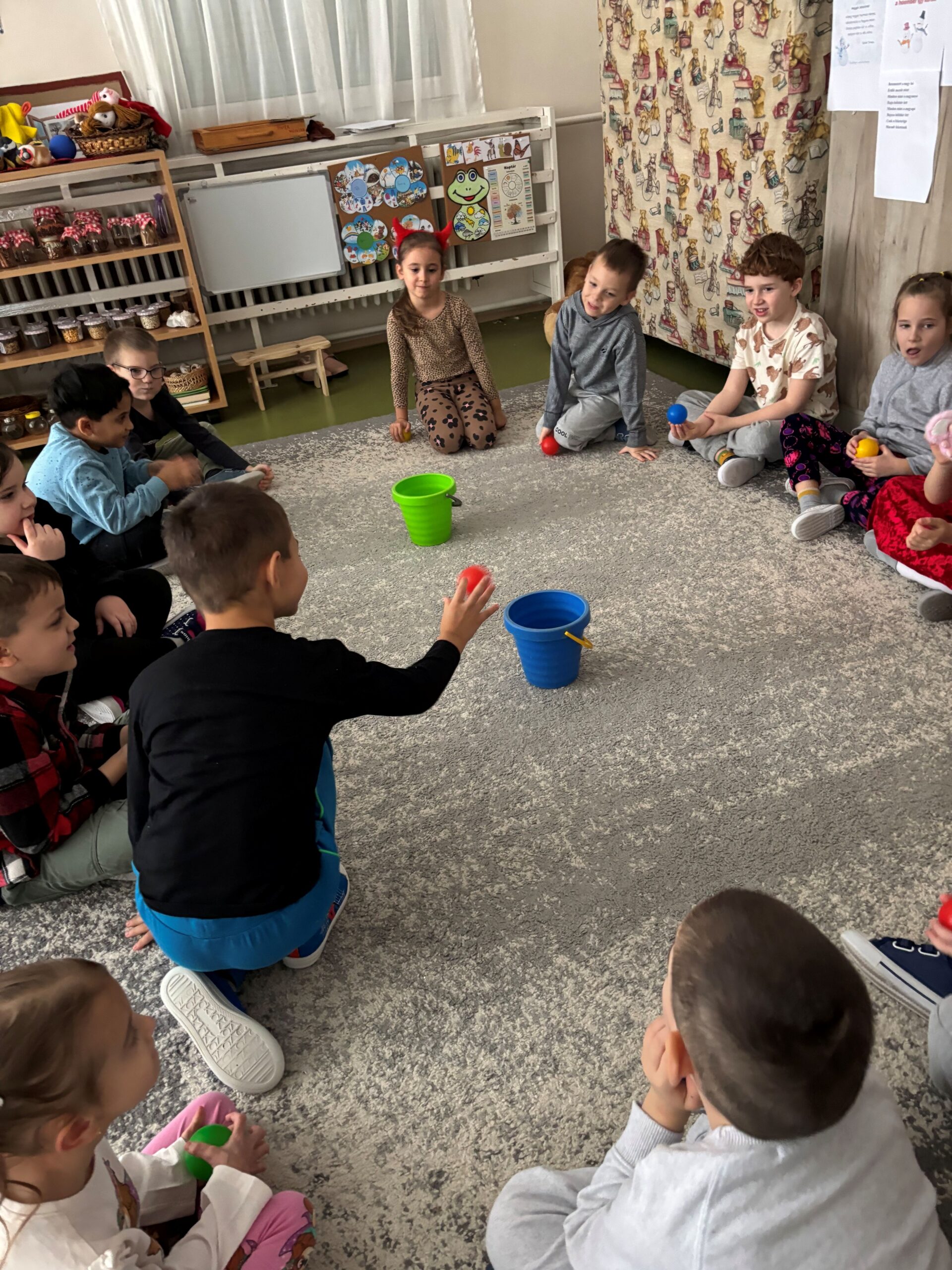Célbadobós játék: Kislabdával két kisvödör közül választva célba lehet dobni. Akinek nem sikerült beletalálnia az újra neki futhatott, mégegyszer ne add fel, tarts ki a célod mellett.