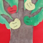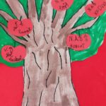 Ebben a hónapban Erősség-fákat készítettek a gyerekek. Gyümölcsöket , leveleket nyírtak ki és beleírták a családtagok erősségeit vagy a barátok, osztálytársak erősségeit. Aztán felragasztották az általuk készített fára. Beszélgetőkör formájában elmondták ,hogy miért esett a választás éppen azokra akikről írtak. Arról is szó volt, hogy milyen fontos, hogy meglássuk egymás erősségeit, milyen nagy erő , ha együtt tudunk működni, munkálkodni a családban vagy az osztályban. A fákat feltettük a boldogságórás programfalra, hogy mások is gyönyörködhessenek benne .