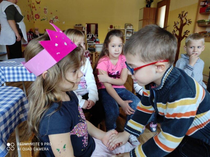 Felidéztük a szereplőket, és választottunk is királyfit, királylányt stb.,én lettem a mesélő, a mese szövője, rendezője. Beépítettem a megvalósításban javasolt dalokat, mondókákat, amiket szintén ismernek a gyerekek.
