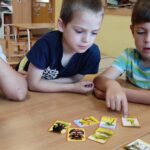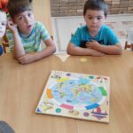 A „Világ gyermekei” társasjátékkal játszottunk bevezetésként. A játékmezőn található térképen megnéztük a földrészeket, a kis kártyák segítségével azonosítottuk azok jellemzőit.