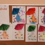Elkészítettük az optimista esernyőnket, amely megvéd a csüggedéstől, a nehéz gondolatoktól. A szokásos „kiállítás”, után a munkákat a faliújságra helyeztem el.