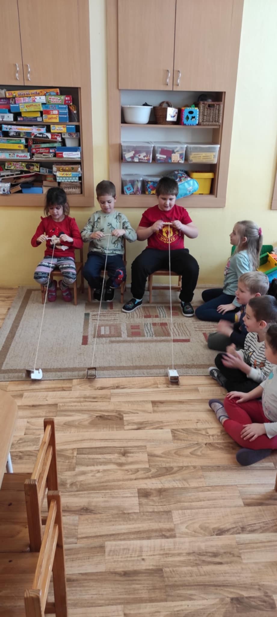 Ezután szánkóhúzó versenyt rendeztünk, megbeszéltük, milyen érzés volt a társak bíztatását hallani. Megbeszéltük, hogy mi volt a célja ezeknek a játékoknak („ügyesedjünk”, „figyeljünk”, nyerjünk”), majd a cél fogalmáról kérdeztem a gyerekeket.