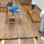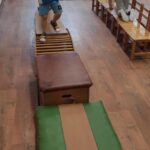 A tornaszobában a szokásosnál is nagyobb akadálypályát építettem. A gyerekek kipróbálhatták bátorságukat az új tornaszereken.