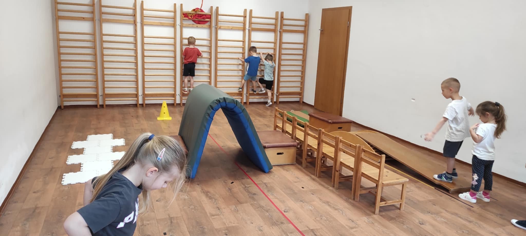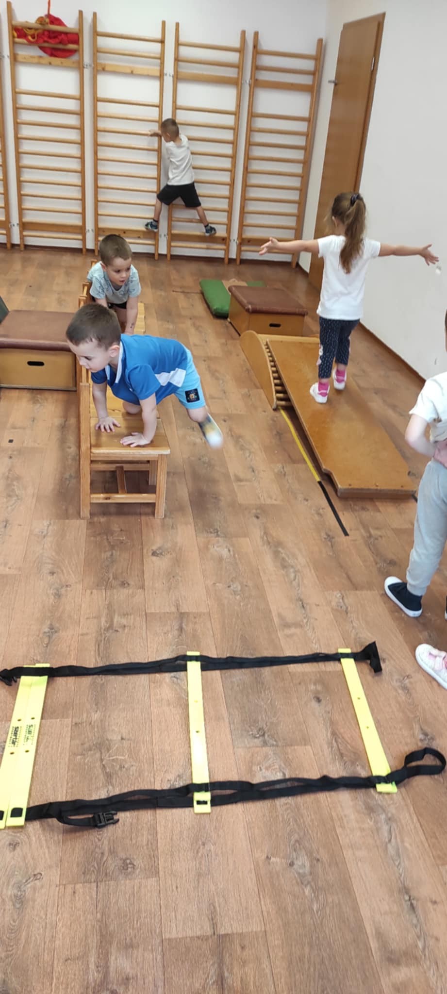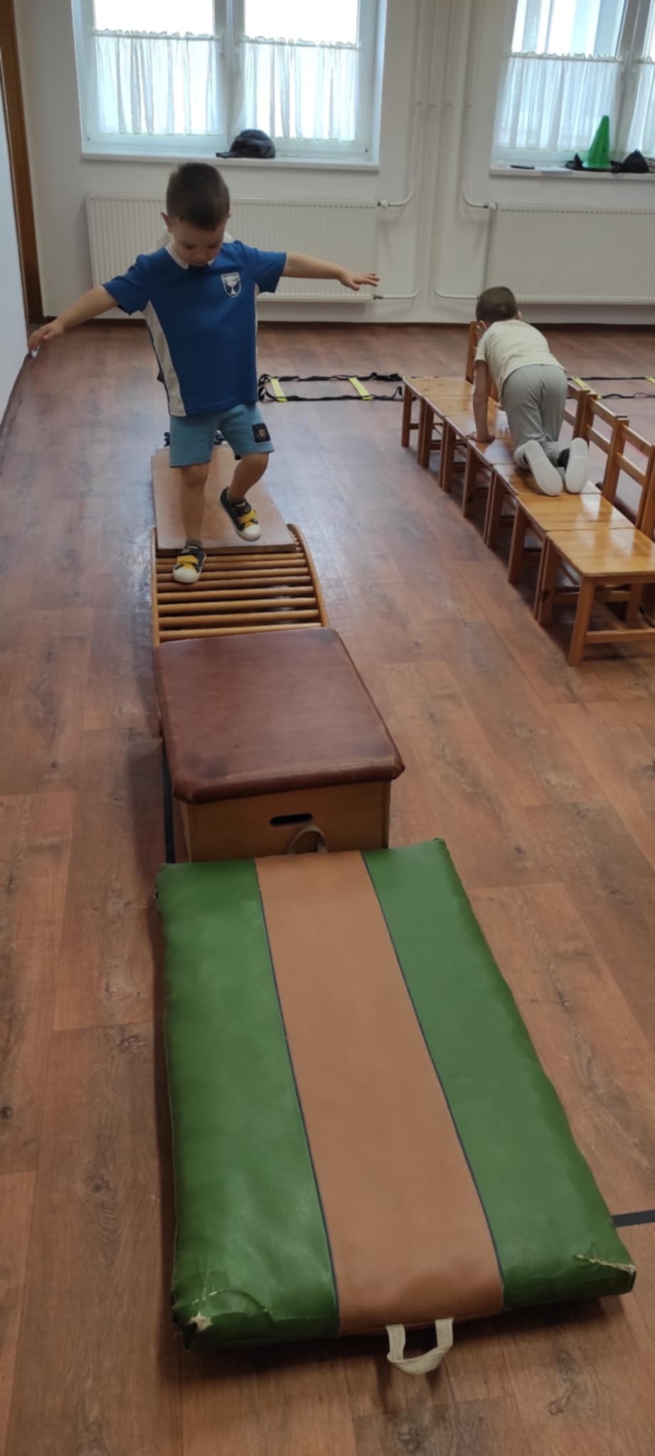 A tornaszobában a szokásosnál is nagyobb akadálypályát építettem. A gyerekek kipróbálhatták bátorságukat az új tornaszereken.