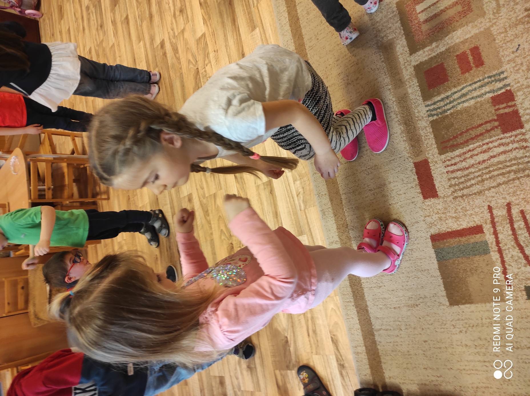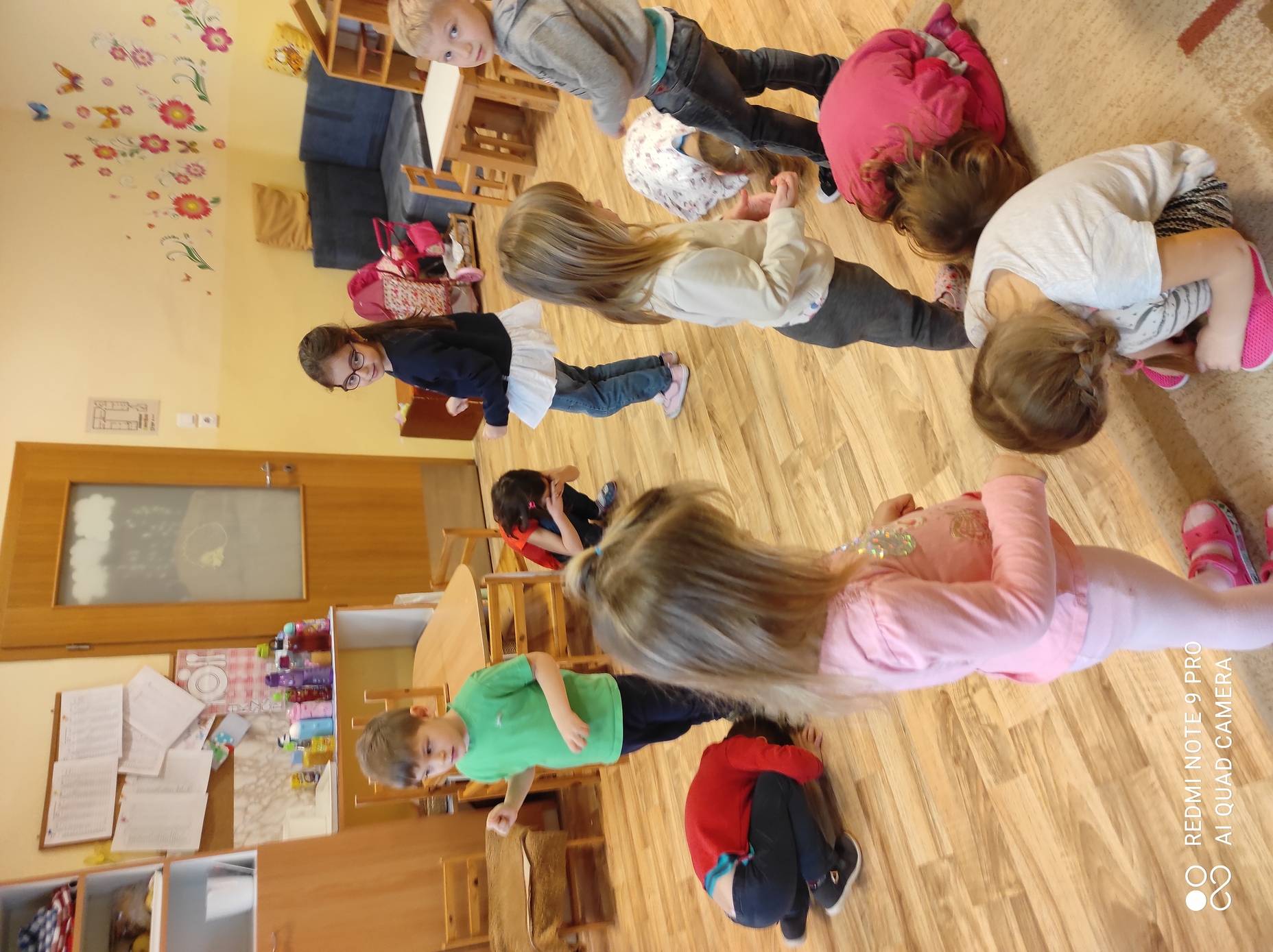 A következő foglalkozást „Gumiember” játékkal kezdtük. Nagyon élvezték a gyerekek, többször is eljátszottuk, ezután pedig „beépült” a mindennapos testnevelés foglalkozásunkba is. Mészöly Miklós: A bánatos medve című meséjének felolvasásával folytattam a foglalkozást. A mese annyira tetszett a gyerekeknek, hogy még egyszer meghallgatták. Ezután beszélgettünk arról, hogyan juthatunk túl a rosszkedvünkön: már az is jó, ha felismerjük, mert akkor már tudunk ellene tenni; meg kell látni az apró szép, jó dolgokat; könnyebb, ha van barátunk; ha hibázunk, tudjuk, hogy jóvá lehet tenni stb. A folytatásban arról beszélgettünk, hogy hogyan lehet jóvá tenni a hibákat, mások megbántását. Ezután egy masszírozós játékot, a „Pizzasütést” játszottuk.