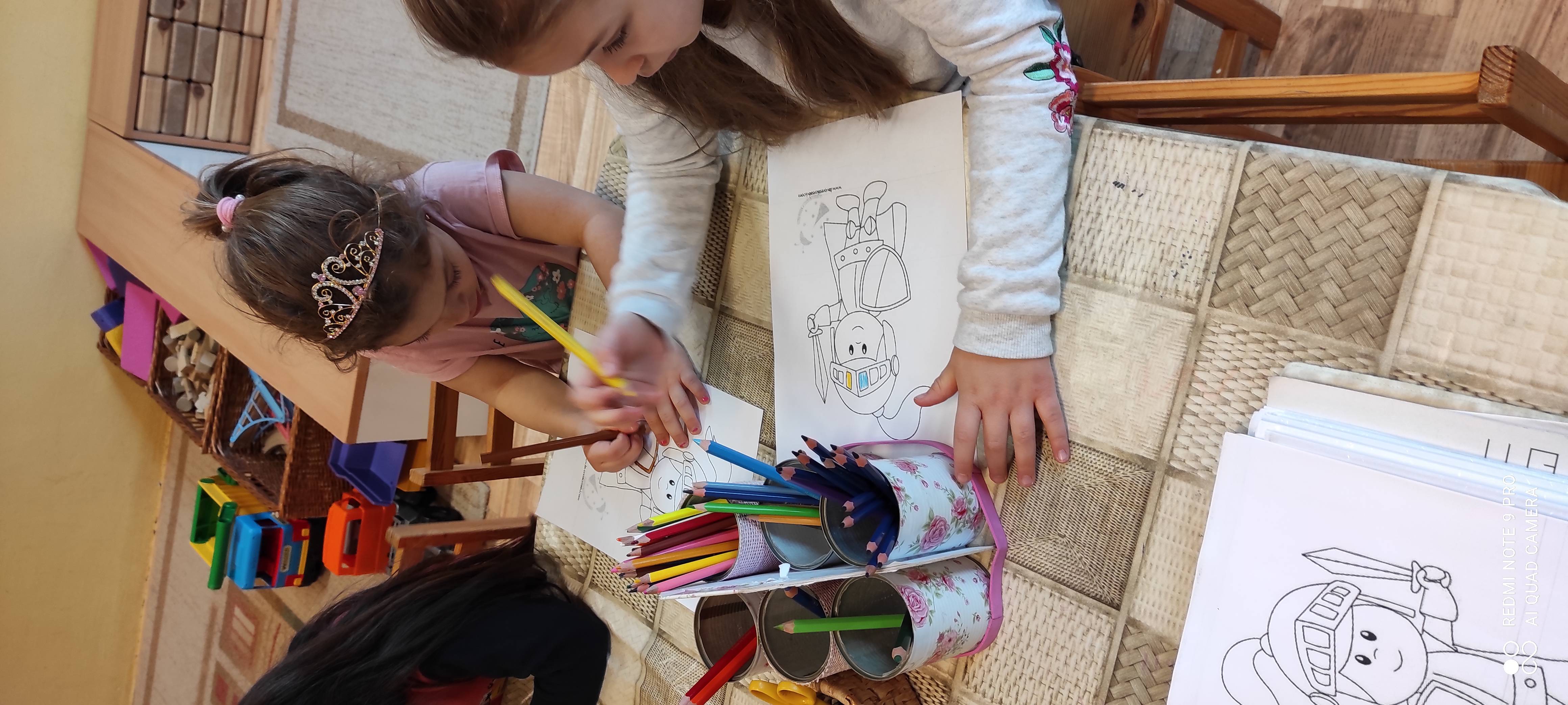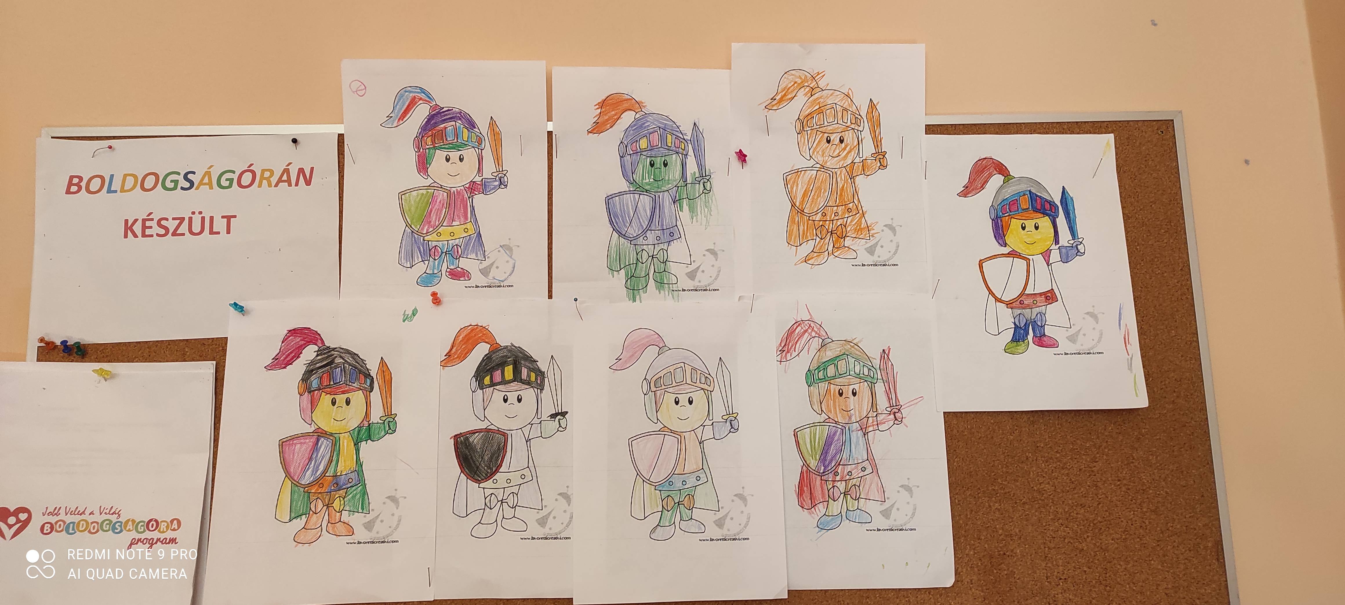 A kedves kis páncélos lovag kiszínezését egy rövid kis beszélgetés előzte meg arról, hogy hogyan védjük meg magunkat a félelmeinktől, a rossz hangulattól. A gyerekek sok tartalmas „bölcs” választ adtak a játékokban szerzett ismereteik, és saját tapasztalataik alapján.