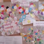 A „Faliújság” készítése közben a gyerekekkel felidéztük, hogy az ismét előkerült munkák készítése közben mit éreztek, mire emlékeznek a feldolgozott témákból. Munkáikat az óvodában olyan helyre tettük, ahol mindenki jól láthatja, a csoportok külön- külön is megnézték kis „tárlatunkat”.