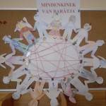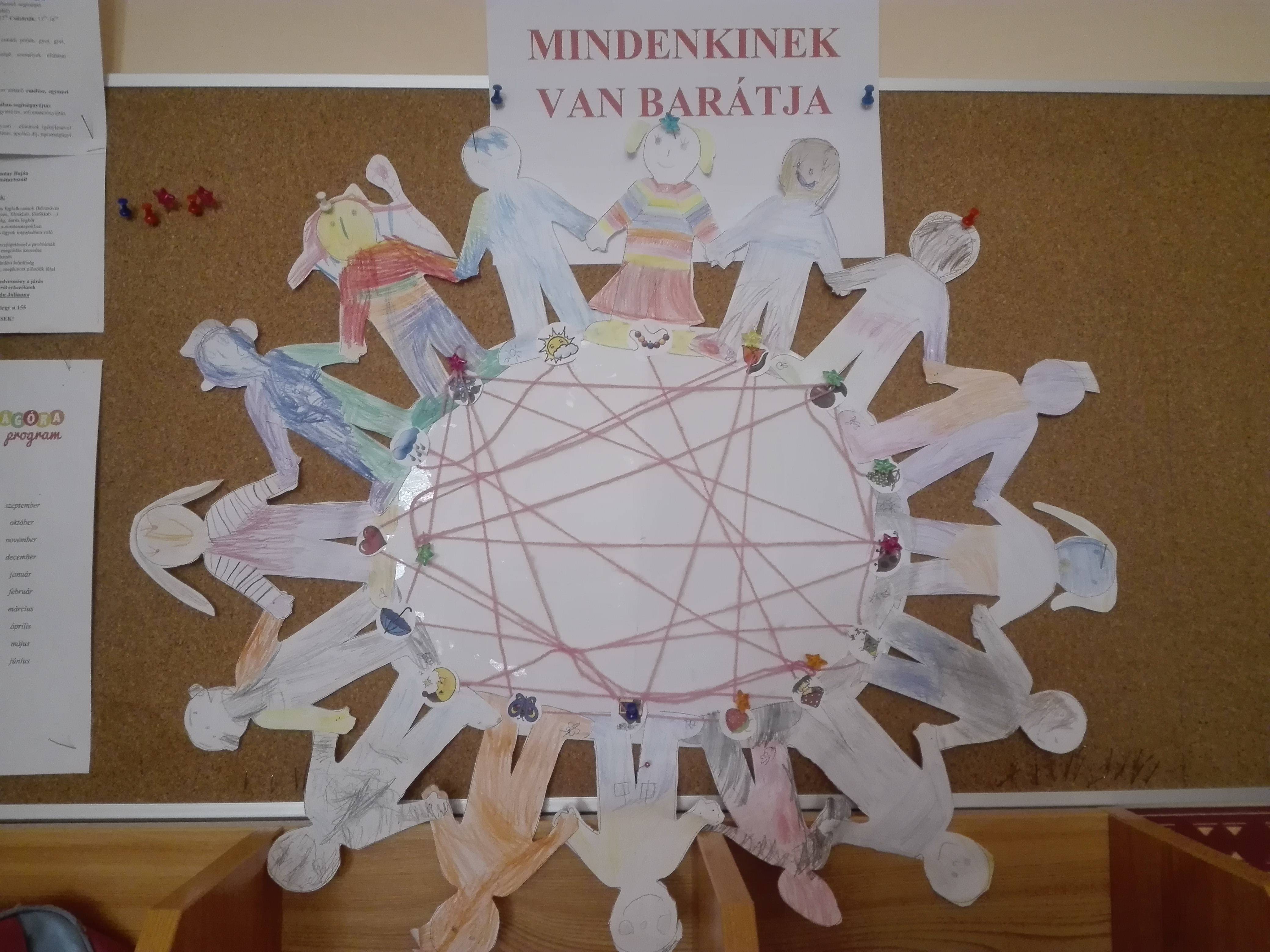 A gyerekek kiszíneztek egy-egy figurát, melyek felragasztása után elkészítettük a „barátsághálót”, közben elmondták, miért szeretik a barátjukat.