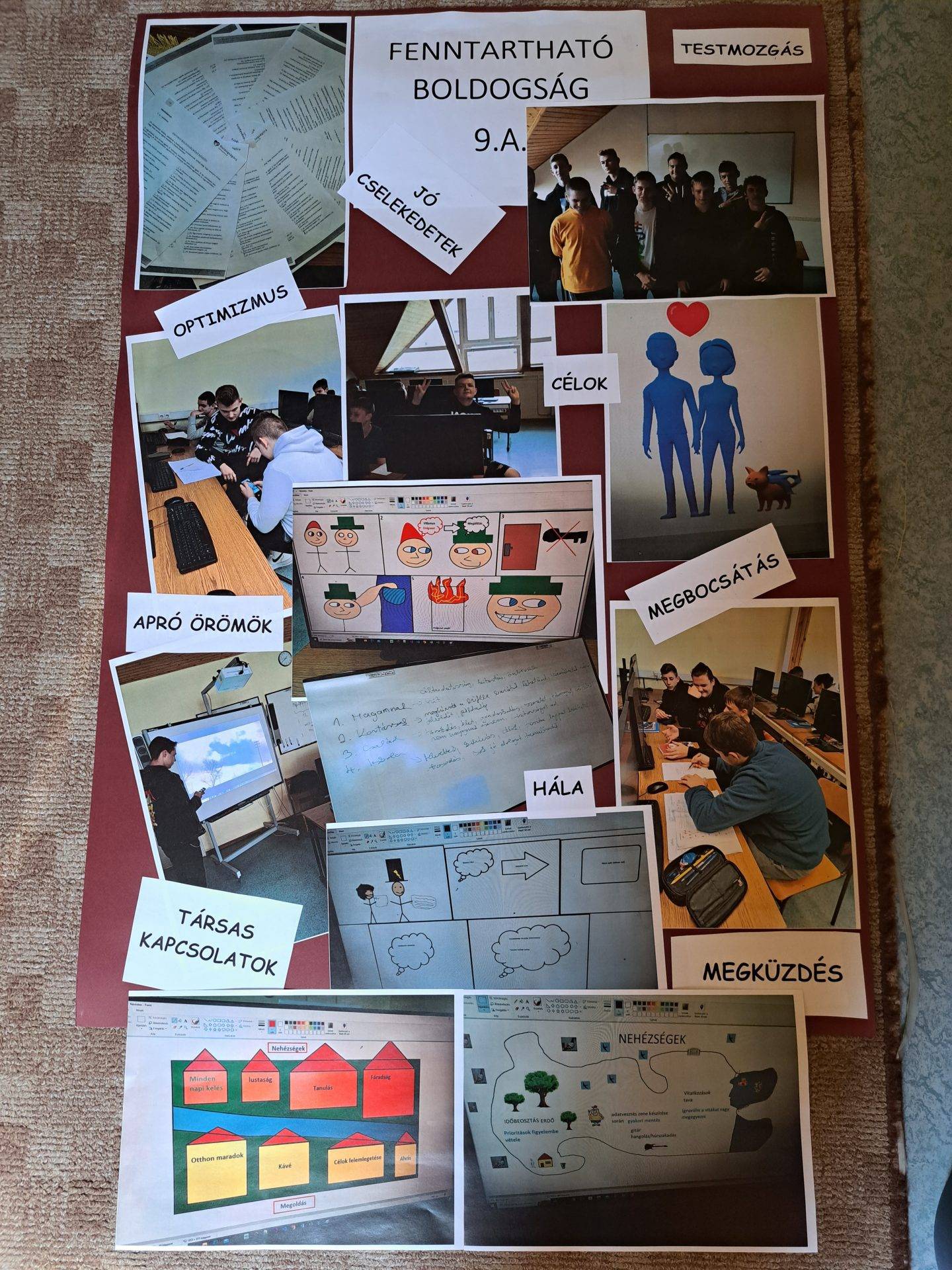 A tanév utolsó hónapjában a fenntartható boldogsággal foglalkoztunk a 9.A. osztály tanulóival. Átbeszéltük a tanévben feldolgozott témákat, és hogy a tanultakat ki és hogyan tudja alkalmazni, beépíteni az életébe, a mindennapjaiba. Elmondható, hogy egy nagyon jó osztályközösség alakult ki, a tanulók összetartása példaértékű. Kölcsönösen támogatják egymást, ezzel példát mutatnak a többi osztálynak, és a barátaiknak, családjaiknak is.