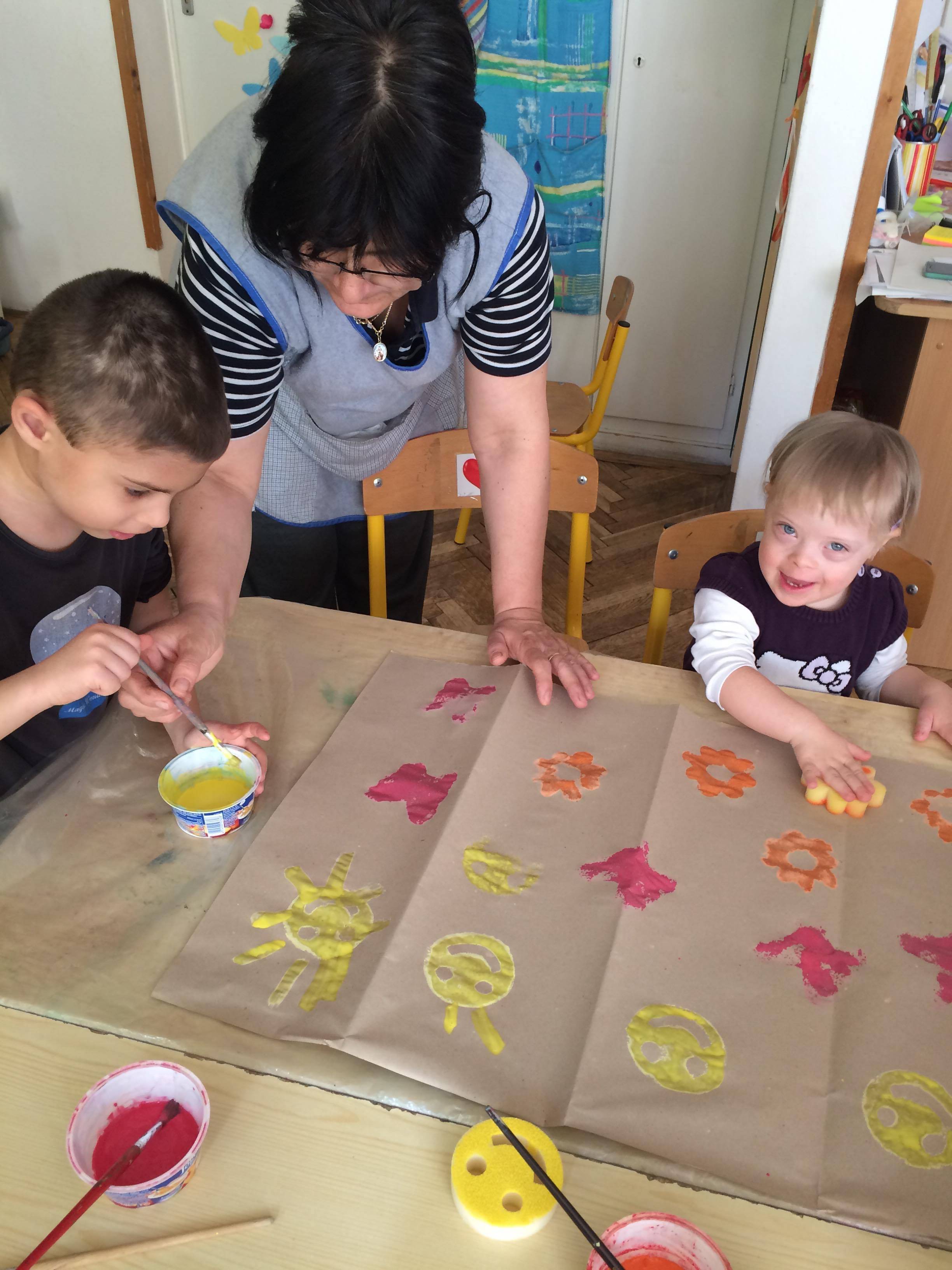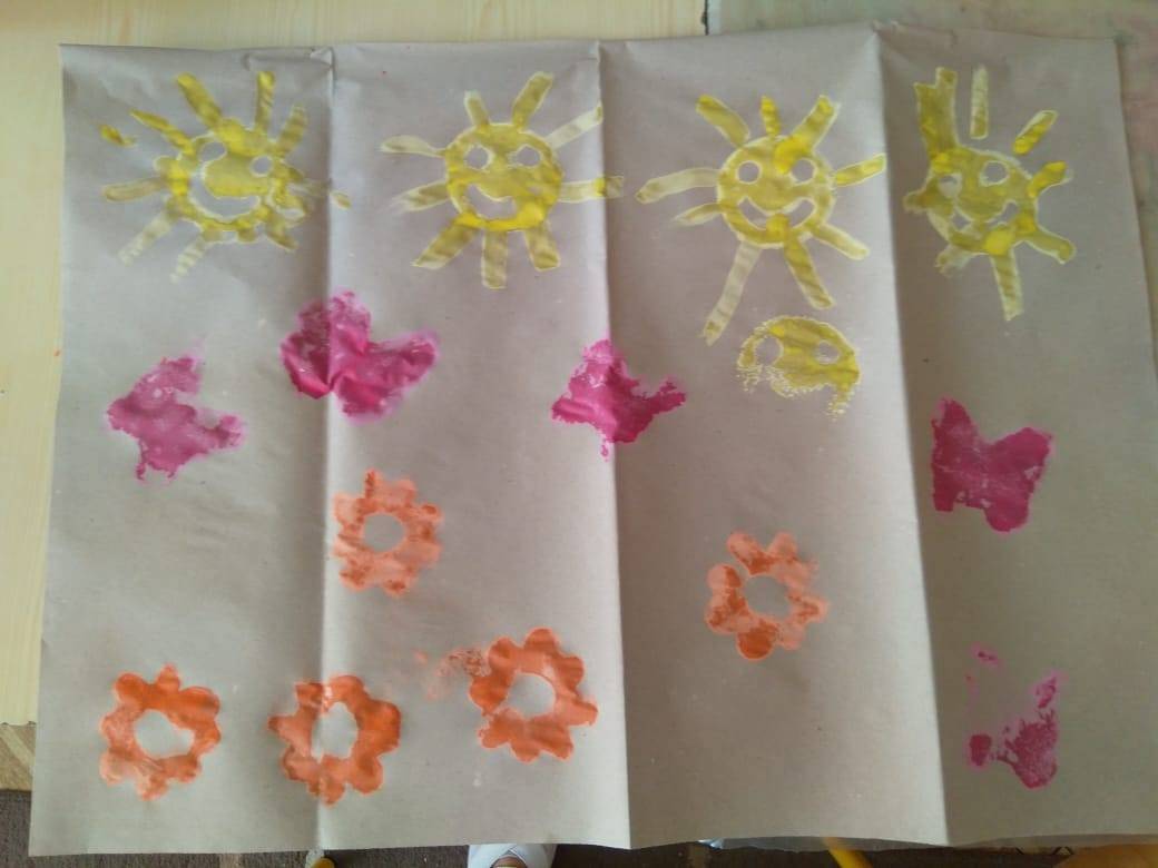 Az óvodásokkal egy séta alkalmával érzékeltük érzékszerveinkkel a tavaszi színeket és illatokat a virágok által, a napfény melegét és a lágy szellő érintését a bőrünk által. Visszaérkezve az óvodába megörökítettük a tavaszi apró örömeinket, újra átéltük élményeinket.(Napfény melege, pillangók tánca, virágok illata). Szivacsnyomdával napocskát, pillangót és virágot festettünk szép tavaszi színeket használva.