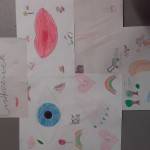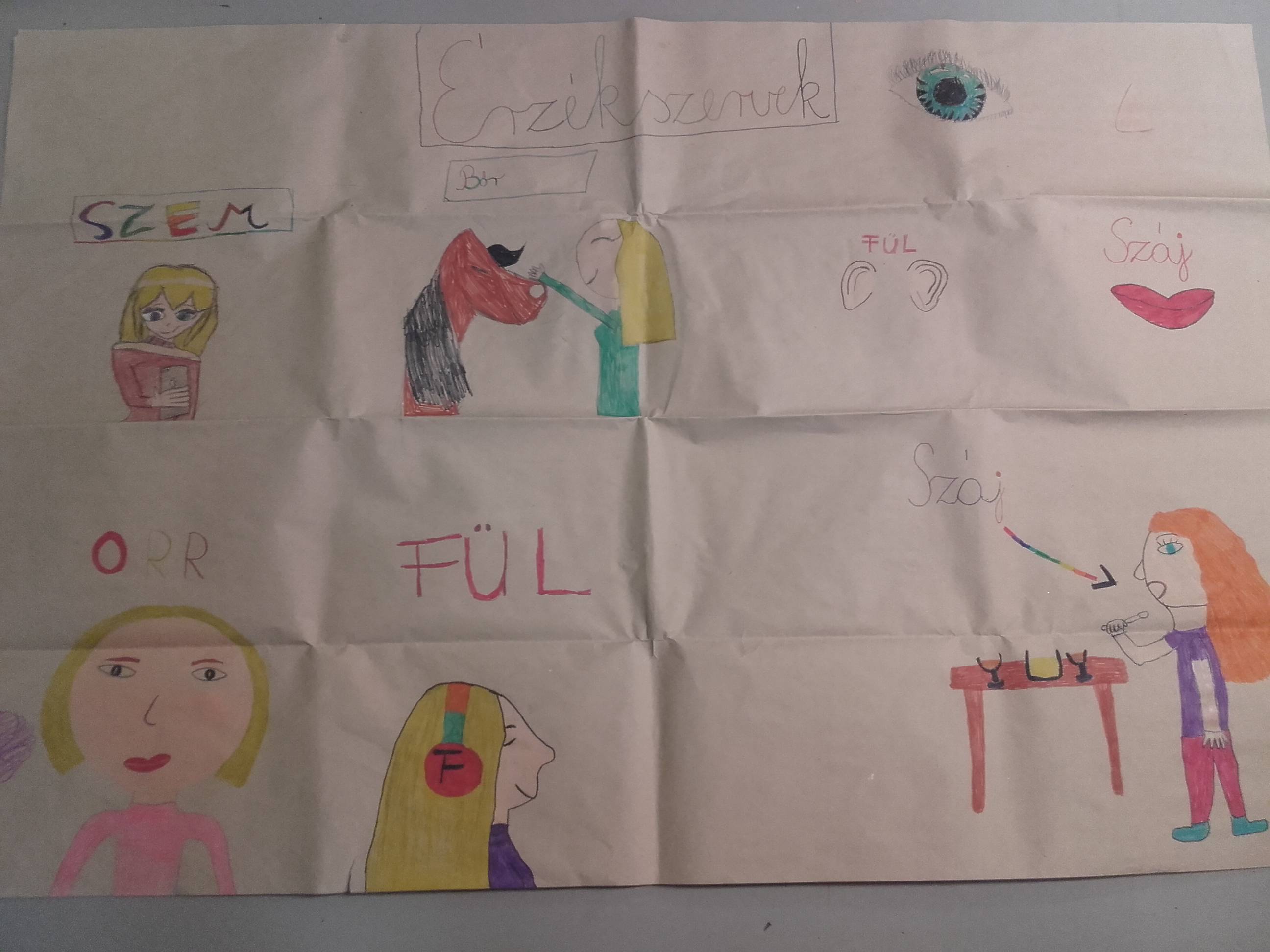 A rajzos feladatokat mindig nagyon élvezik. Sokat gondolkoztak, hogy lehet megjeleníteni a boldogság forrását érzékszervekkel párosítva,. Szerintem nagyon jól sikerült.