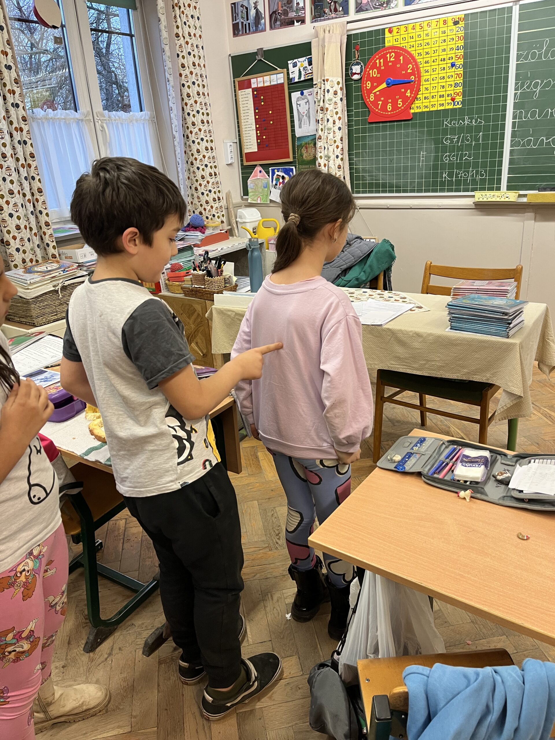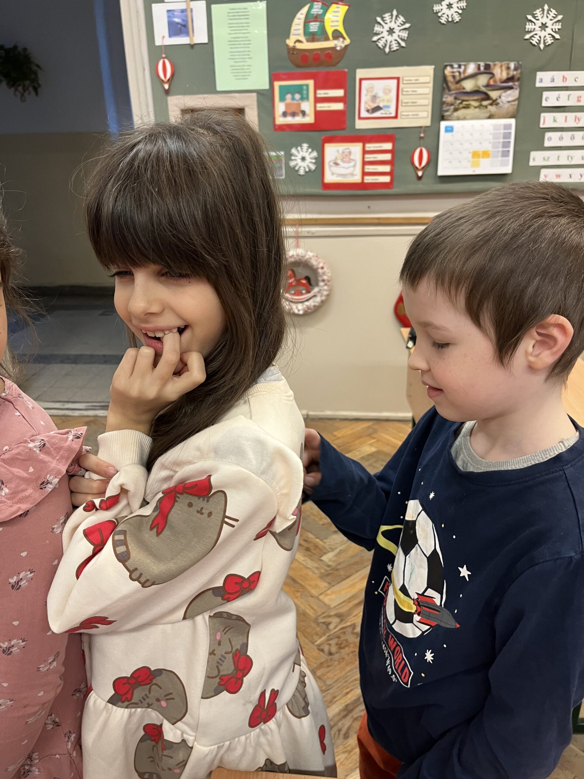 A gondolatébresztő mese után mindenki beszélt a tanév során kialakult barátságáról, csalódásáról vagy a másikról szerzett pozitív tapasztalatáról. Beszéltünk az egyedüllétről és, hogy milyen fontos hogy közös élményeket szerezzünk társainkkal. Később sorra vettük érzékszerveinket, hogy melyiknek -mi esik jól. Játszottunk is ezekkel, -különböző hangokat hallgattunk, szaglászgattunk, ízlelgettünk, majd egymás hátára betűket írtunk. Jó játék volt!