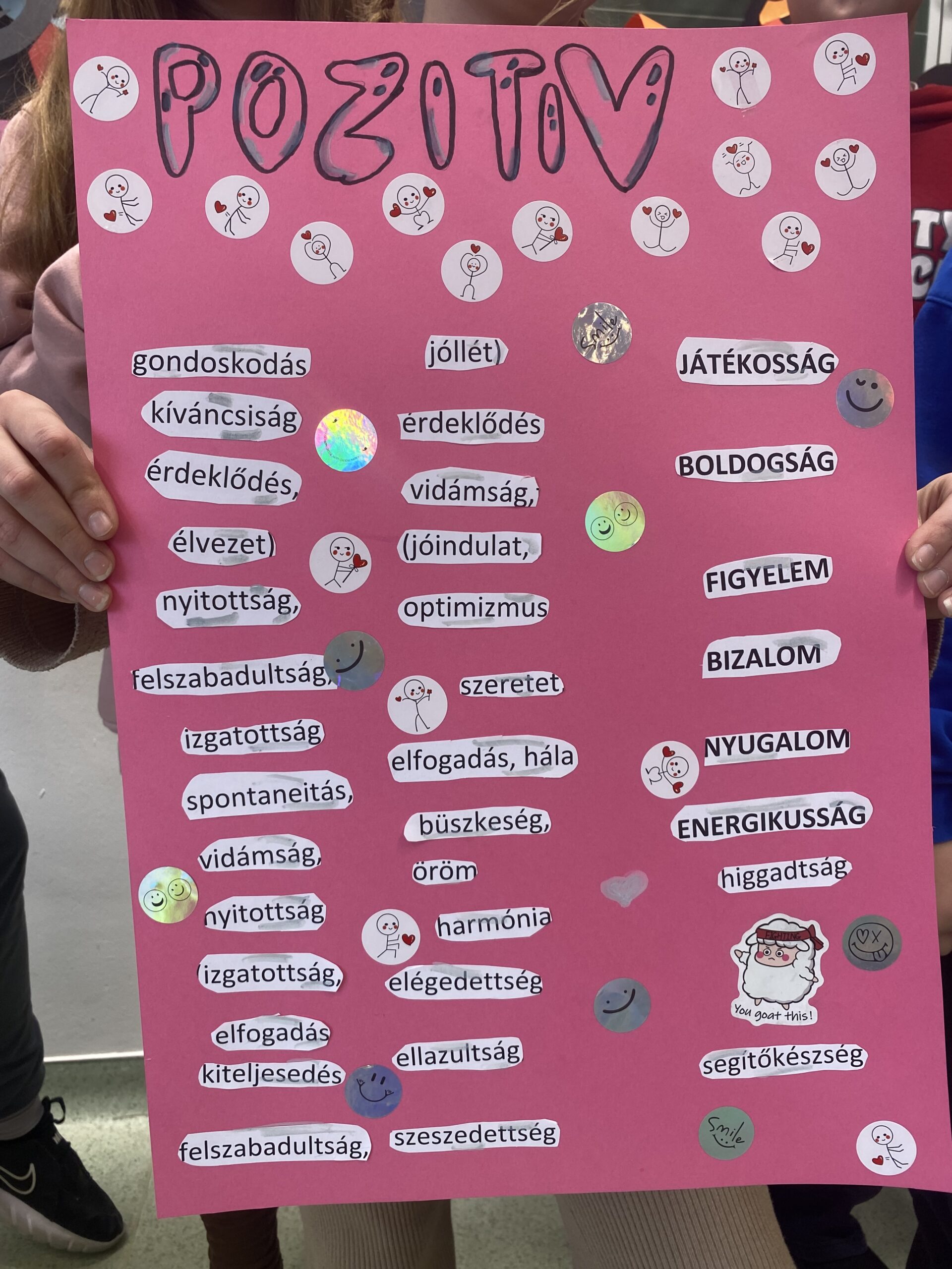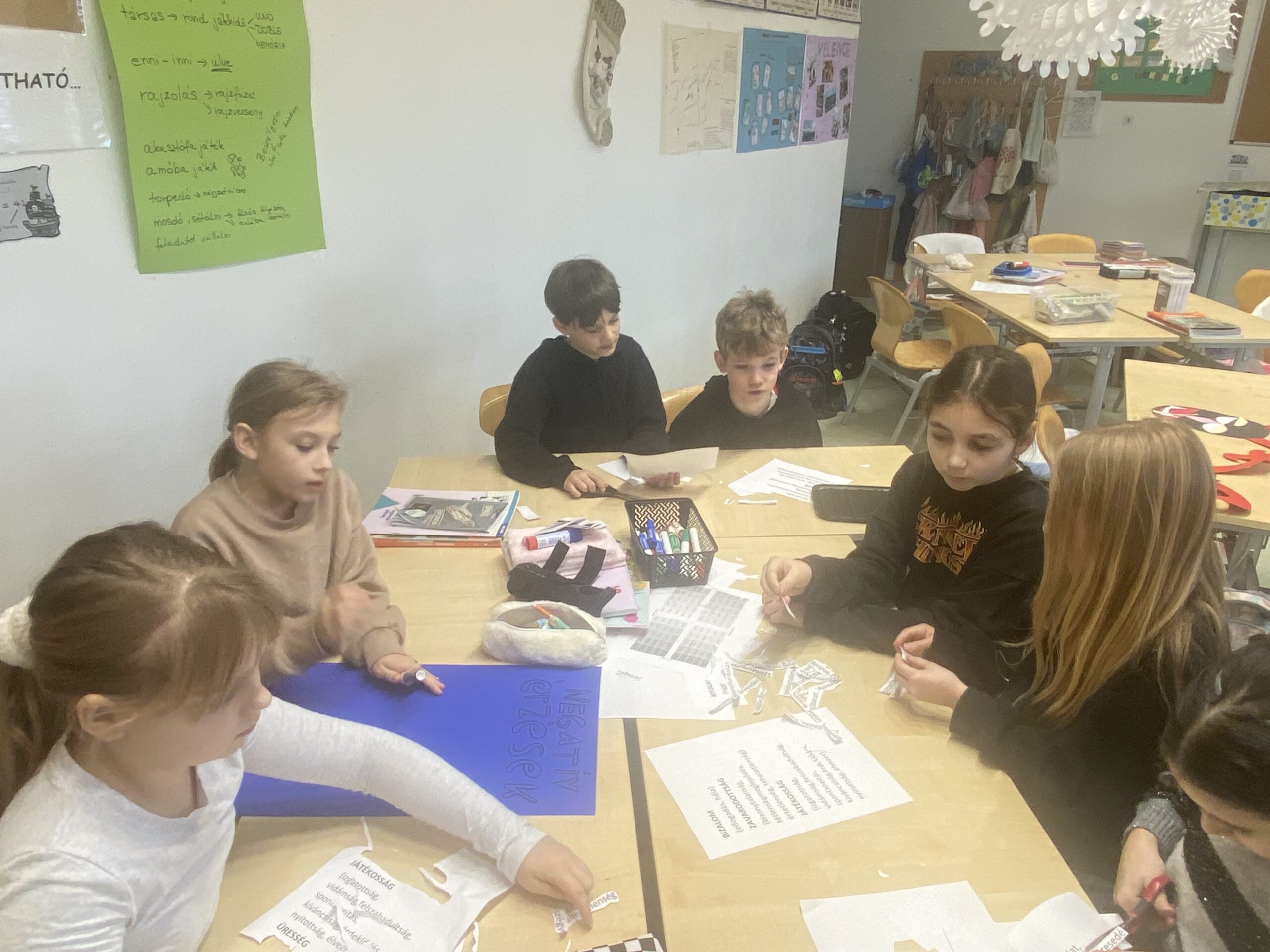 Csoportmunkában kellett szétválogatni a pozitív és negatív érzelmeket, majd tablót készíteni.