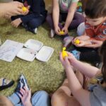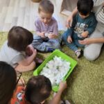 Ebben a játékban sokat játszottunk különböző taktilis ingerekkel. Hiszen az ezekkel való megbirkózás is a mindennapi élet részét képezi. Sok olyan gyermek van, aki érzékeny bizonyos szenzoros ingerekre, így ez a hónap tökéletes lehetőséget teremtett arra, hogy lassan segítsük a gyermekeket a hozzászokáshoz, vagy támogassuk őket az ismerkedéssel.