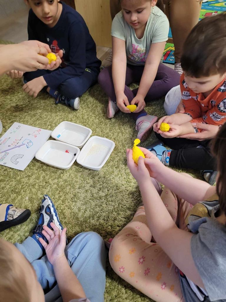 Ebben a játékban sokat játszottunk különböző taktilis ingerekkel. Hiszen az ezekkel való megbirkózás is a mindennapi élet részét képezi. Sok olyan gyermek van, aki érzékeny bizonyos szenzoros ingerekre, így ez a hónap tökéletes lehetőséget teremtett arra, hogy lassan segítsük a gyermekeket a hozzászokáshoz, vagy támogassuk őket az ismerkedéssel.